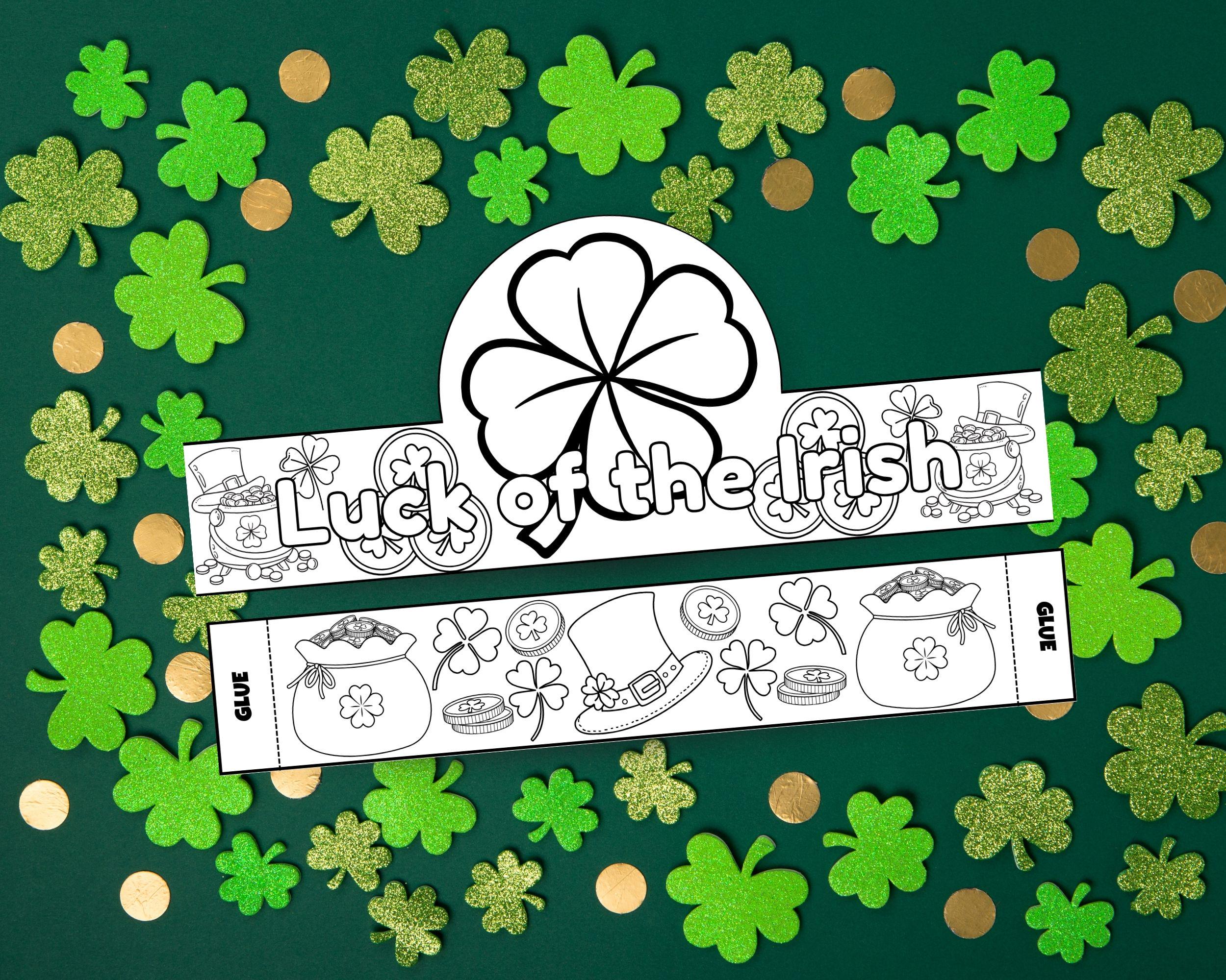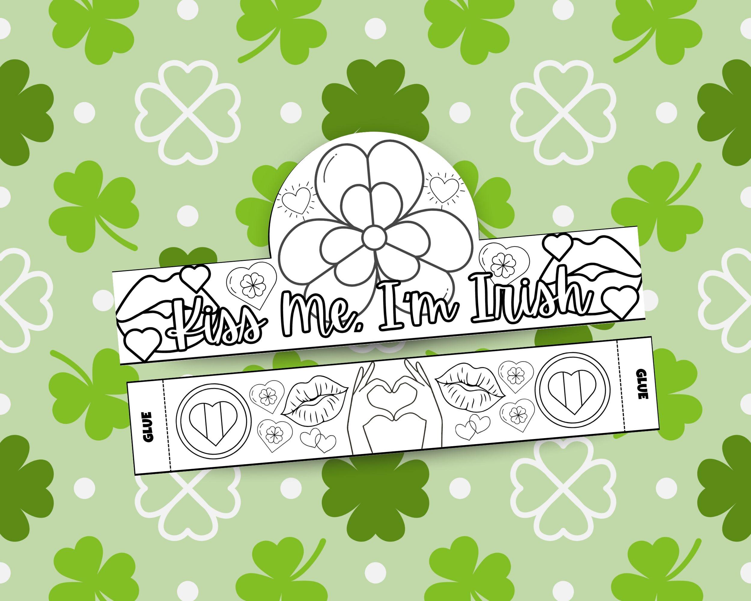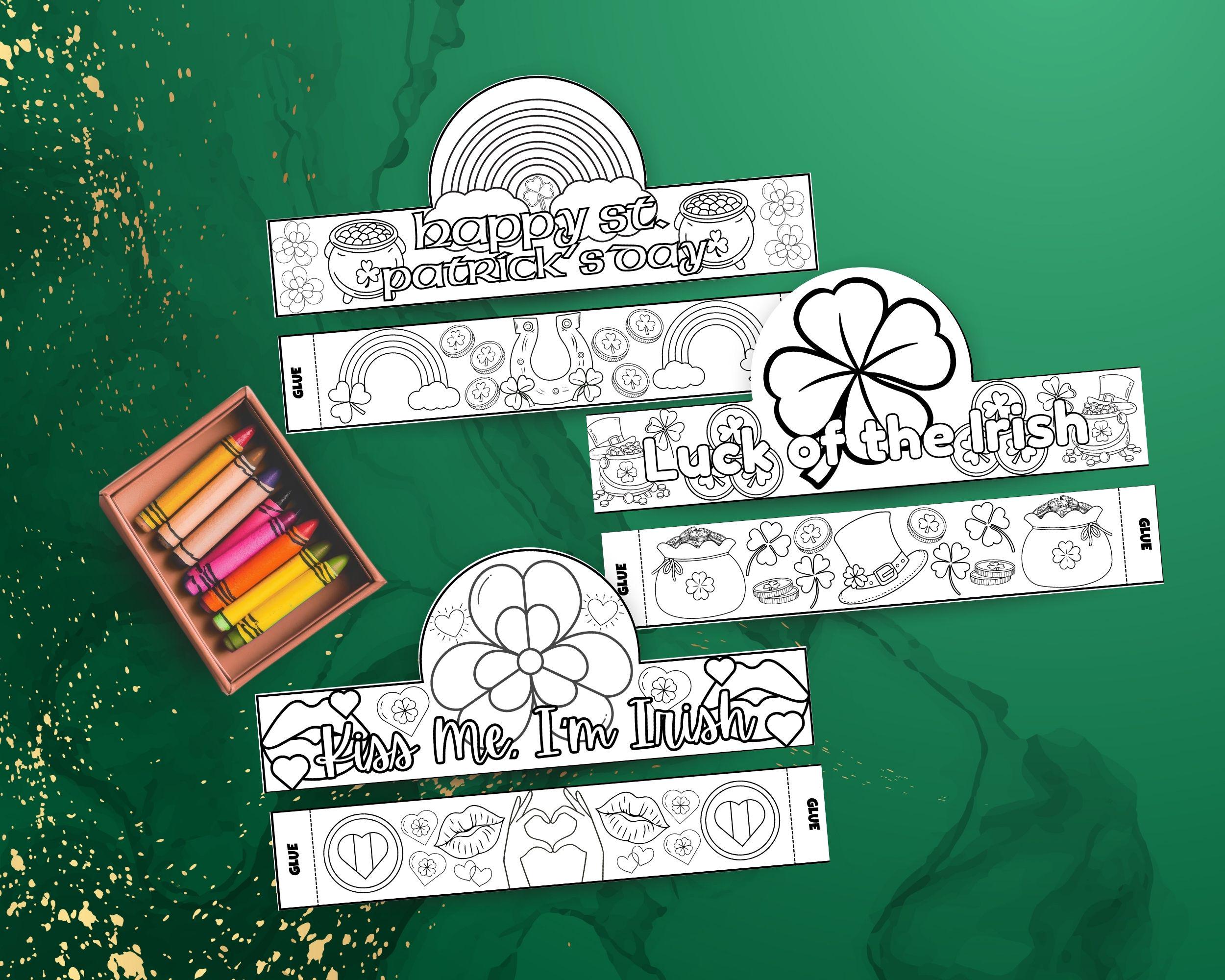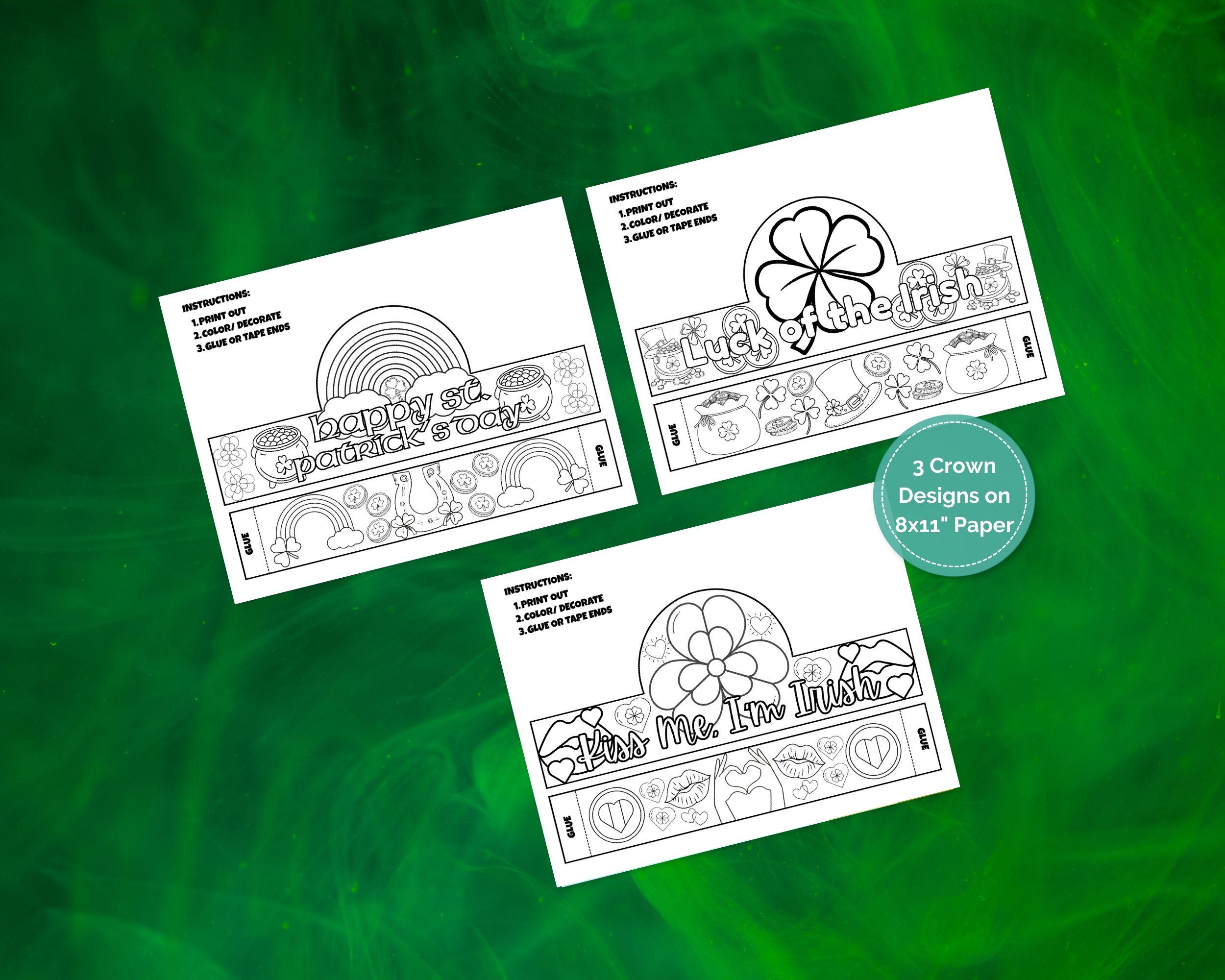 What's Inside This Bundle? 📂 This instant digital download includes three high-quality PDF files, each featuring a different St. Patrick's Day theme: "Happy St. Patrick's Day" Crown: A classic design with cheerful rainbows, clouds, and pots of gold. "Luck of the Irish" Crown: A lucky theme featuring a large shamrock, leprechaun hats, and bags of gold. "Kiss Me, I'm Irish" Crown: A playful and sweet design with hearts, lips, and festive shamrocks.