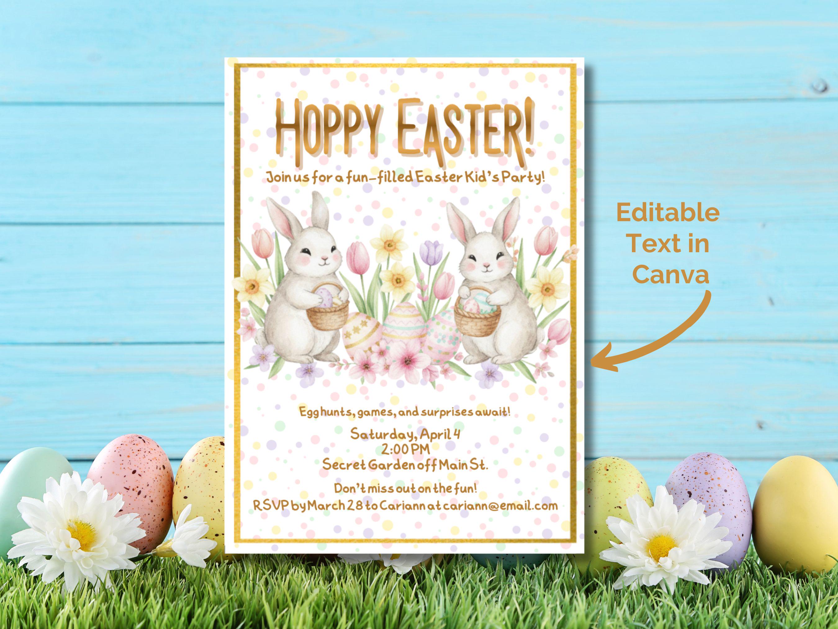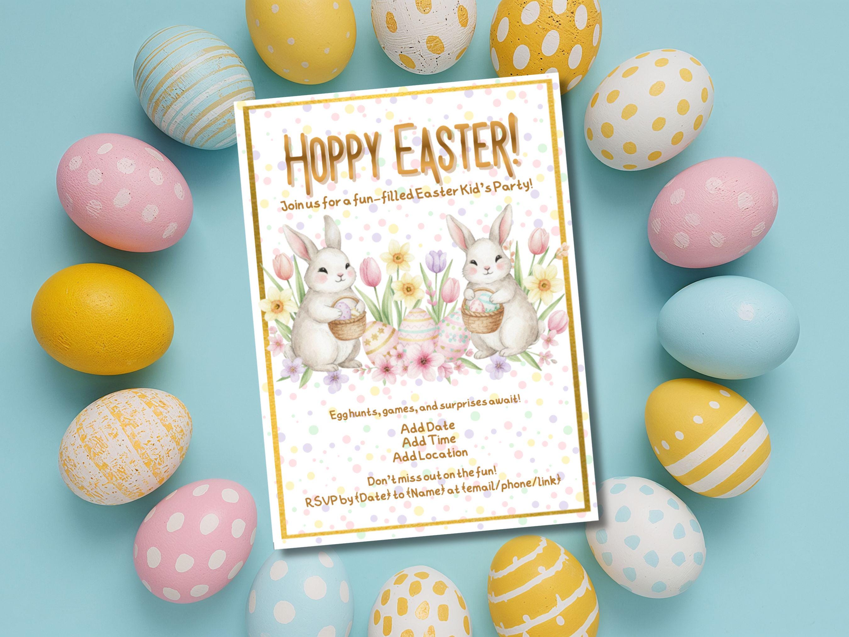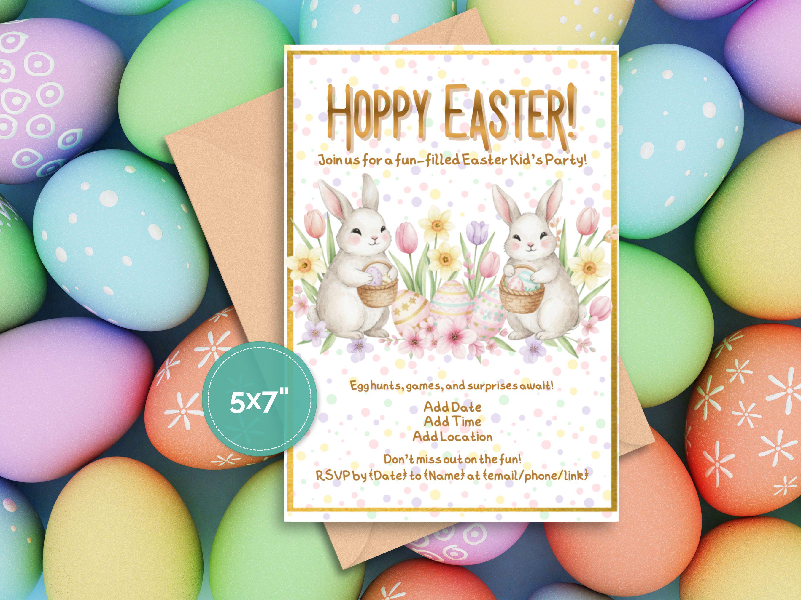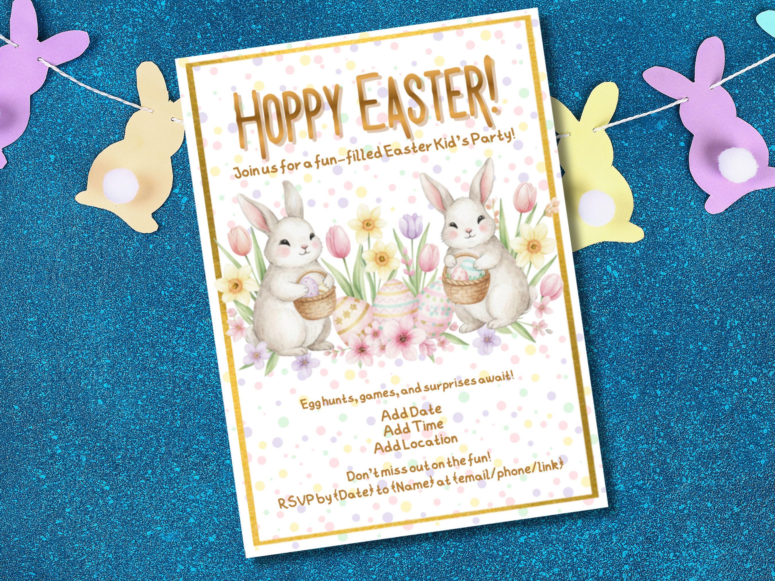 🎉 Make your Easter party unforgettable with this charming invite! Click Add to Cart now and start planning your celebration! 🐇🌷
