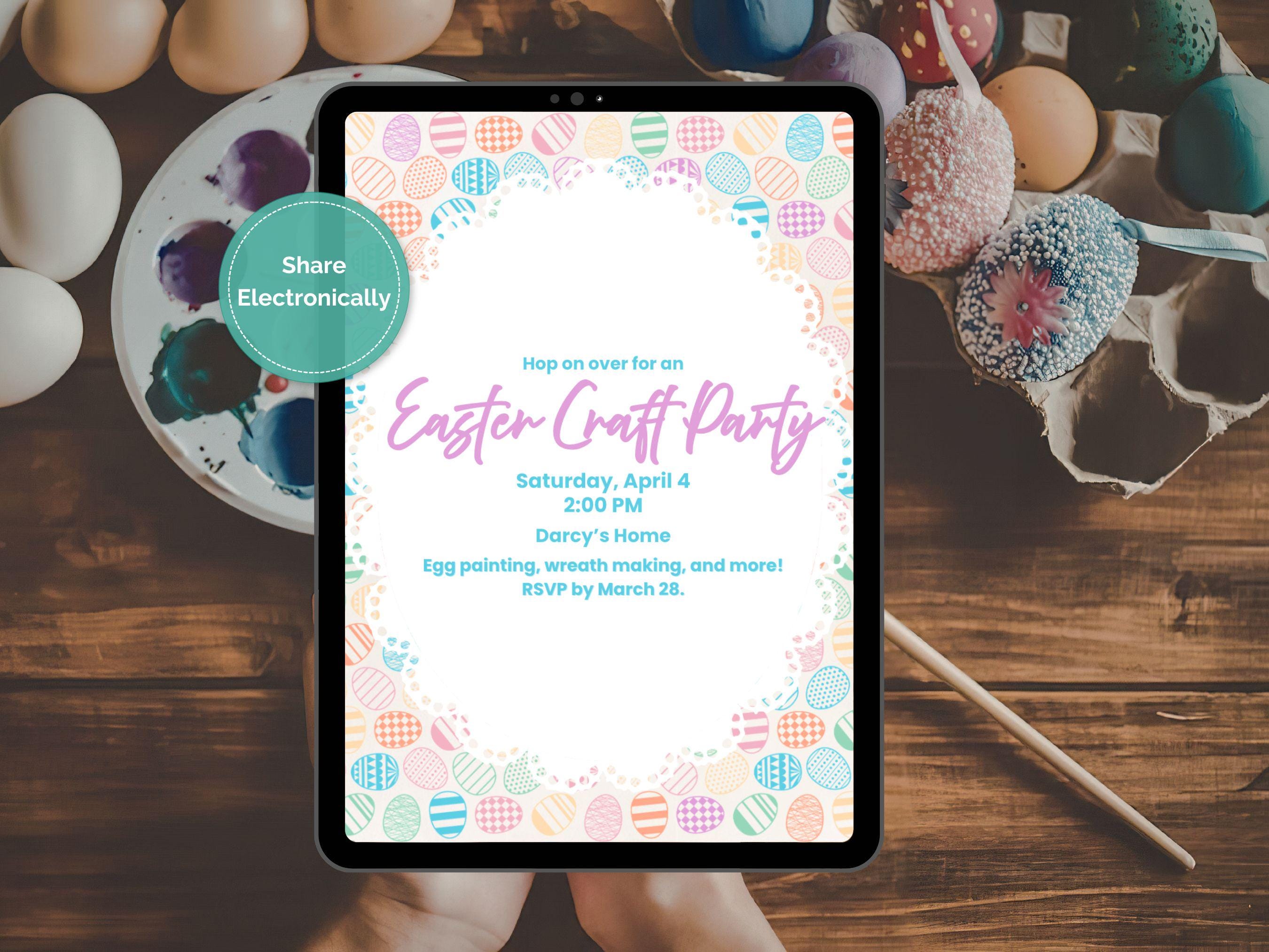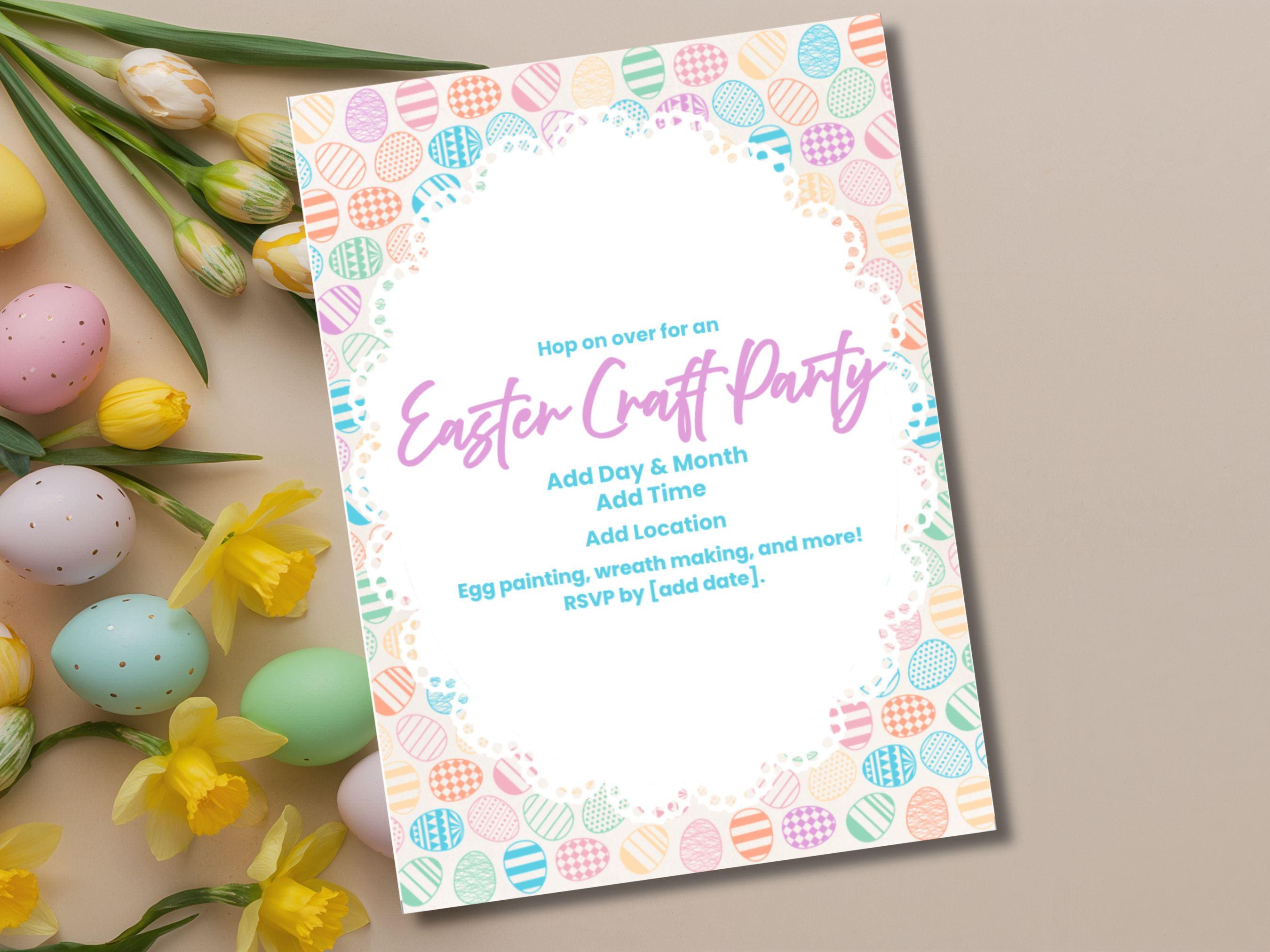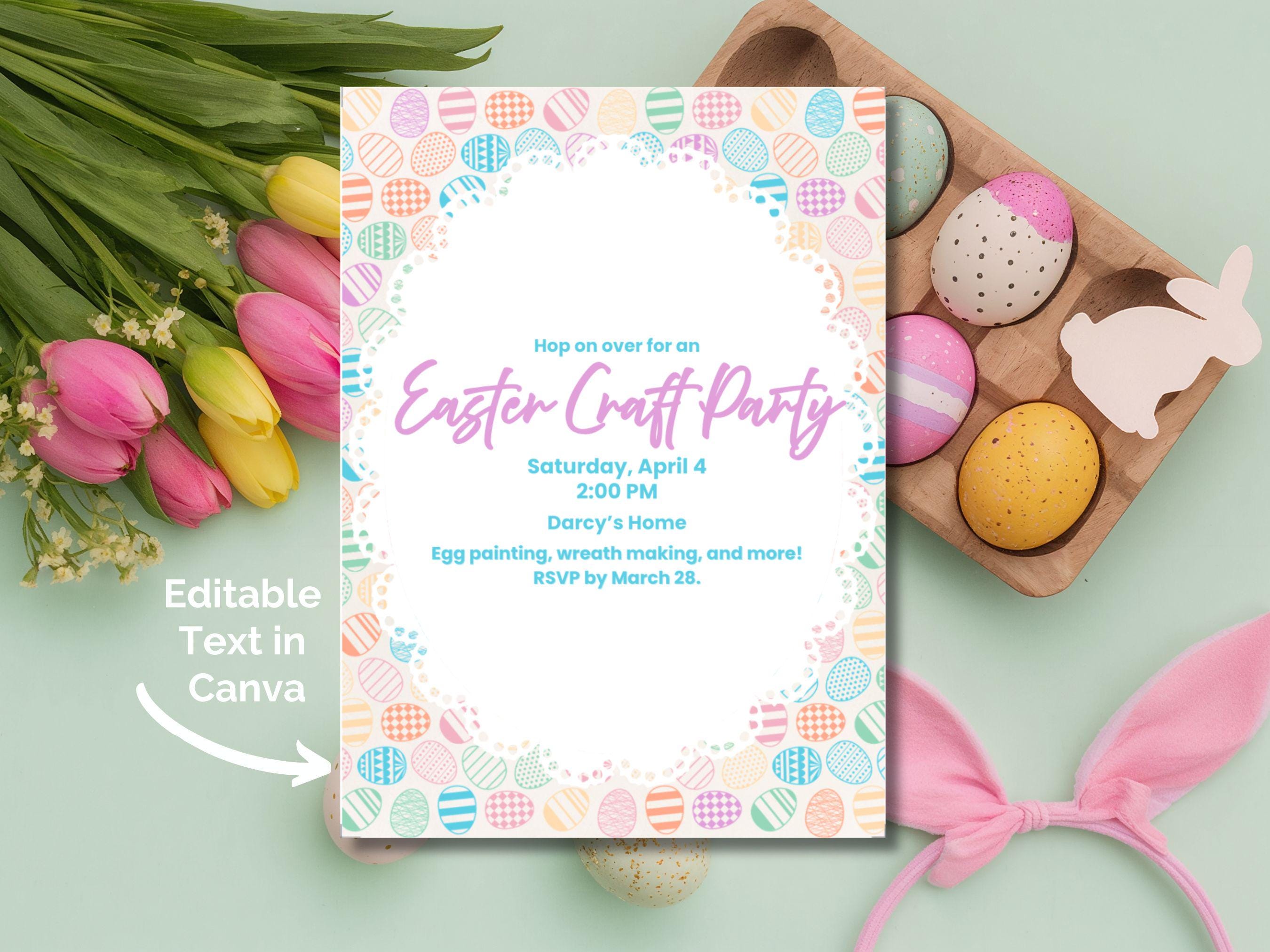 Easily Customize in Canva Free 🎨 We know your time is valuable, so we made this template incredibly simple to update. You can personalize all the event details using a free Canva account. Please note: Only the text is editable. The delightful pastel background and egg border are locked in place to preserve the original artwork.
