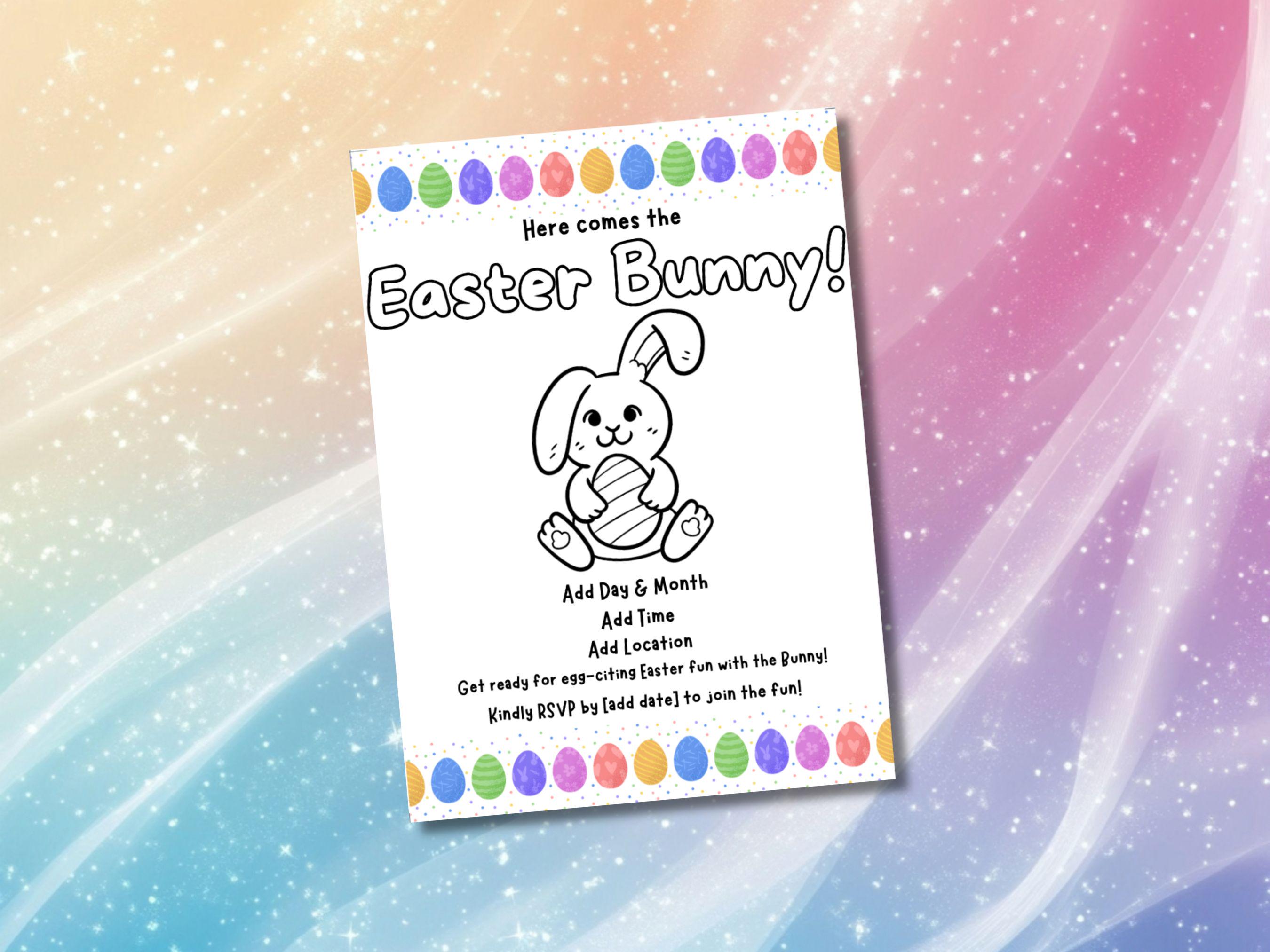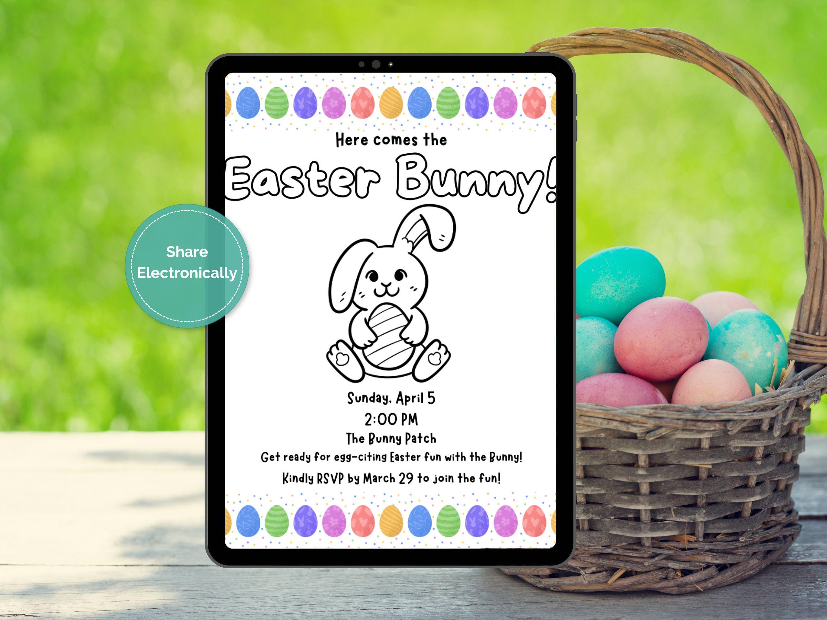🌼 Hop Into Easter Fun! 🌼 Get ready to celebrate with this charming, colorable invitation. Click Add to Cart now and start planning your Easter Bunny visit! 🐇💐