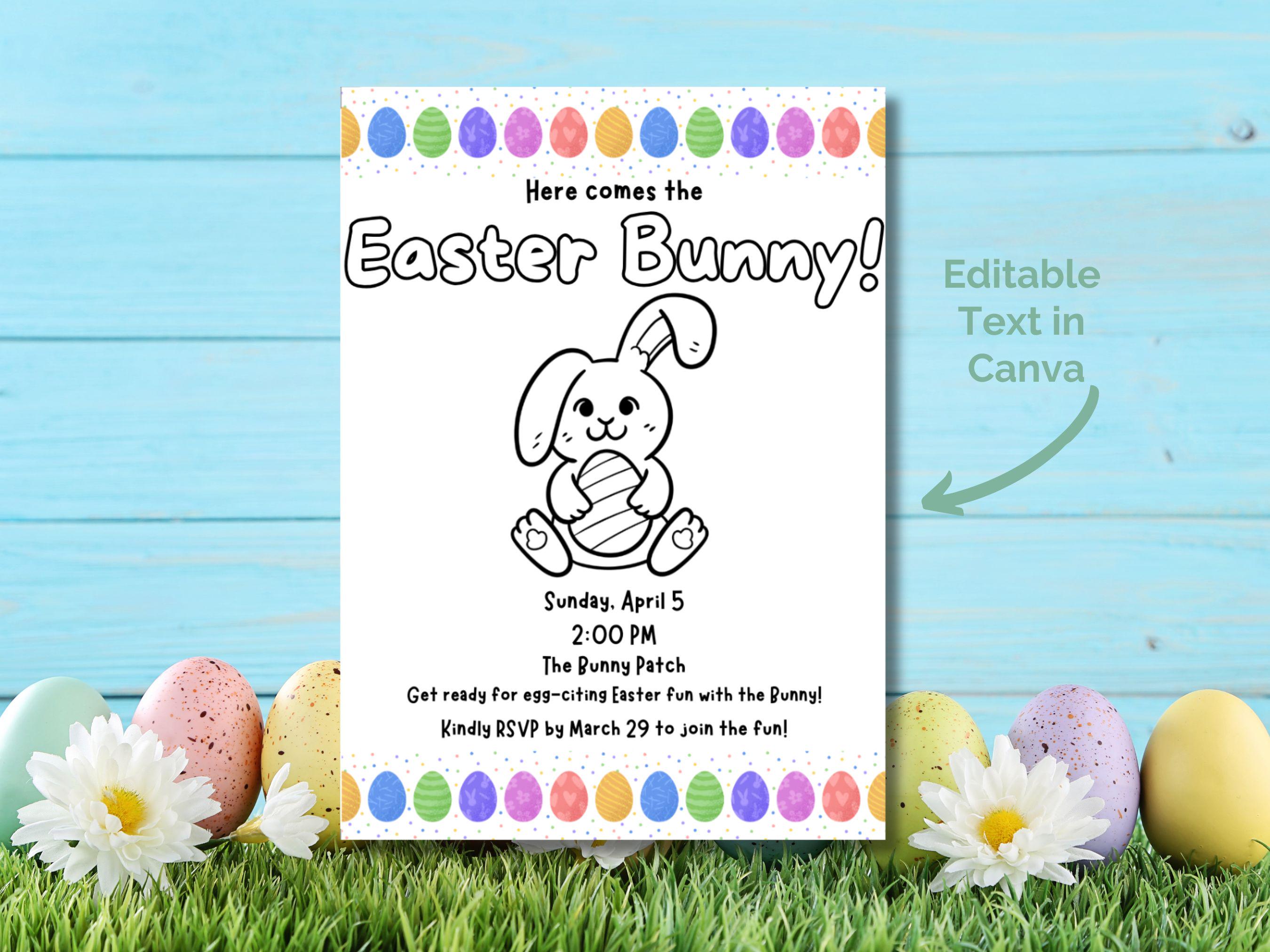 🌸 Colorable Easter Bunny Visit Invitation Template 🐇 Make your Easter celebration extra special with this interactive, colorable invitation! Perfect for kids and families, this printable template is easy to customize in Canva Free—no design experience needed! 🎨🐣