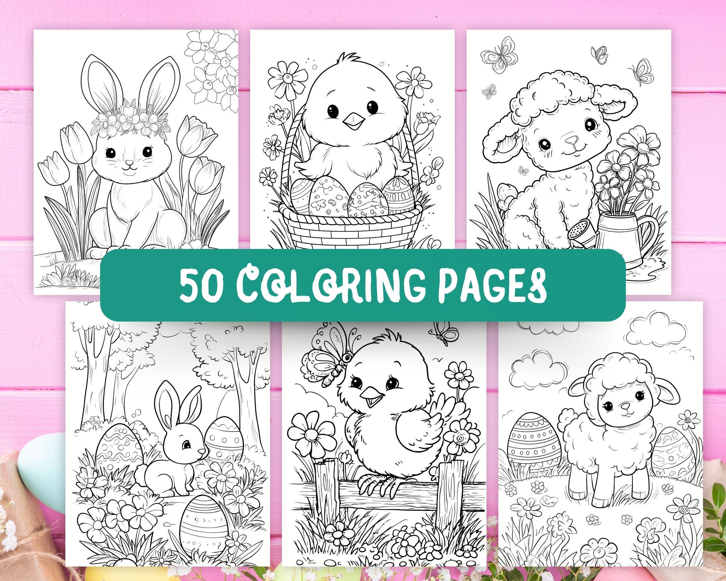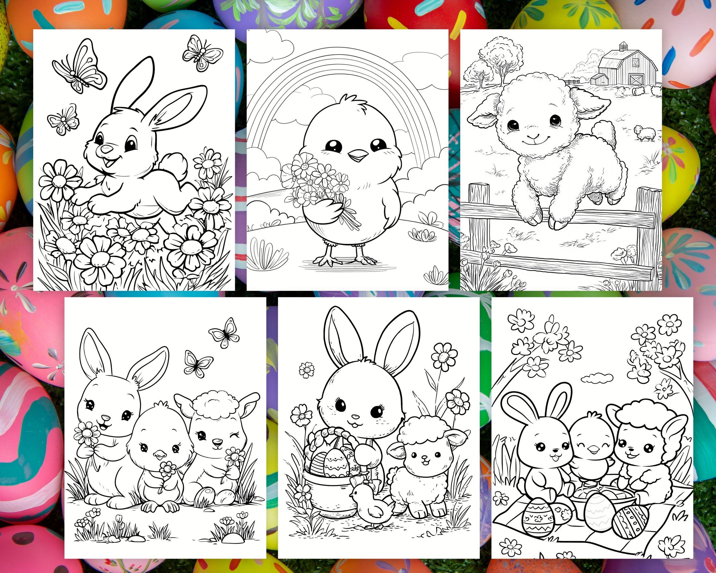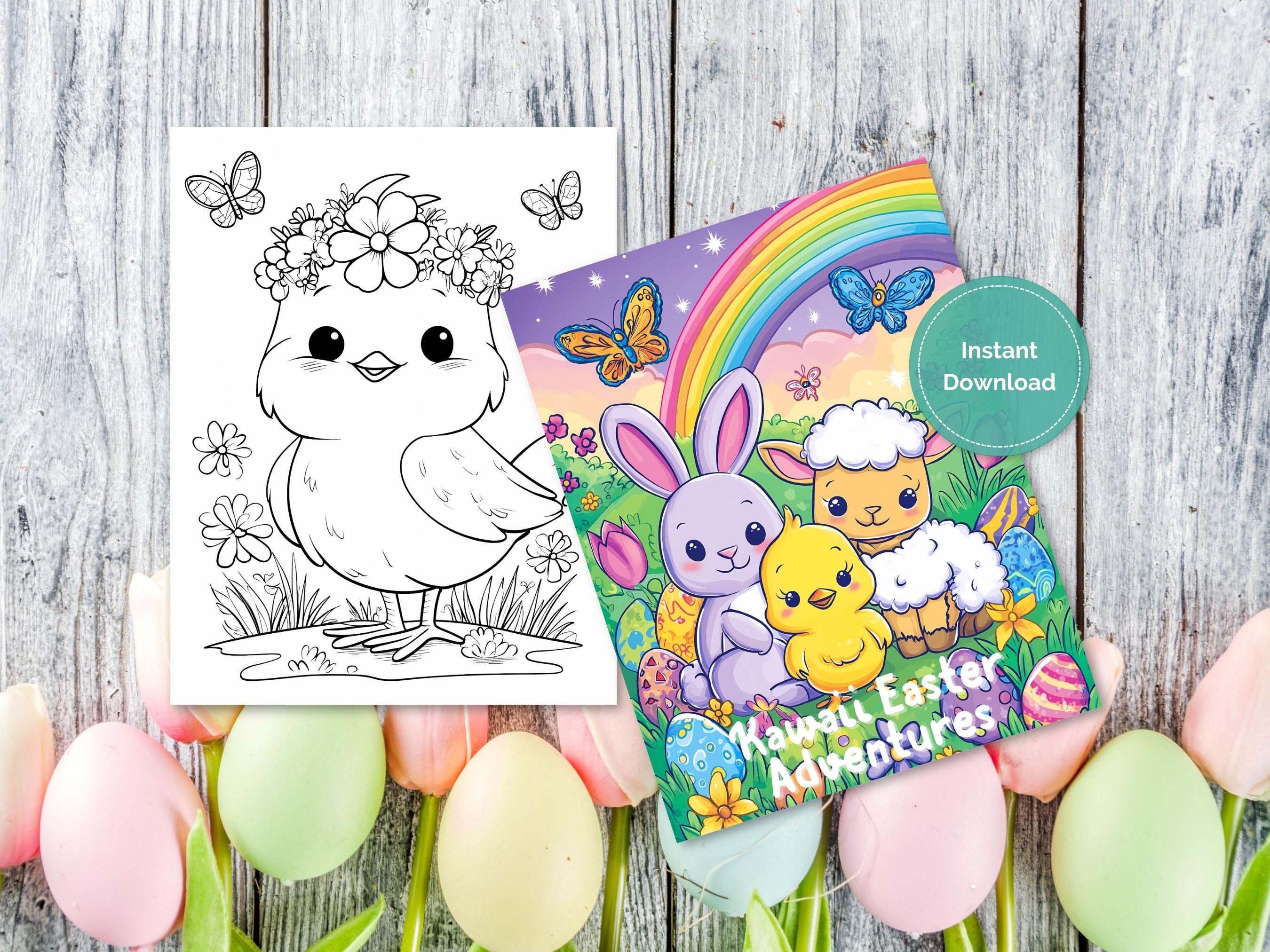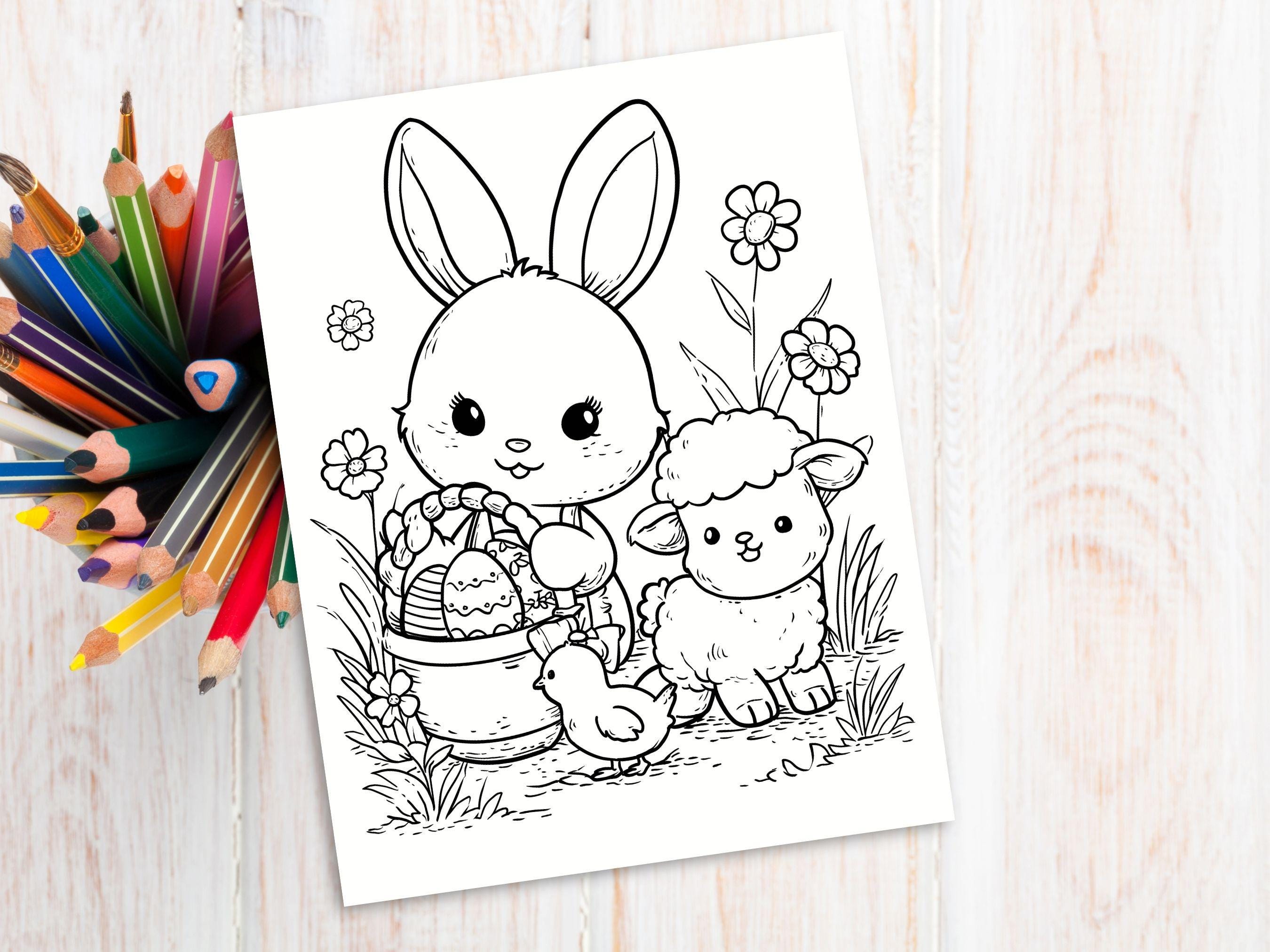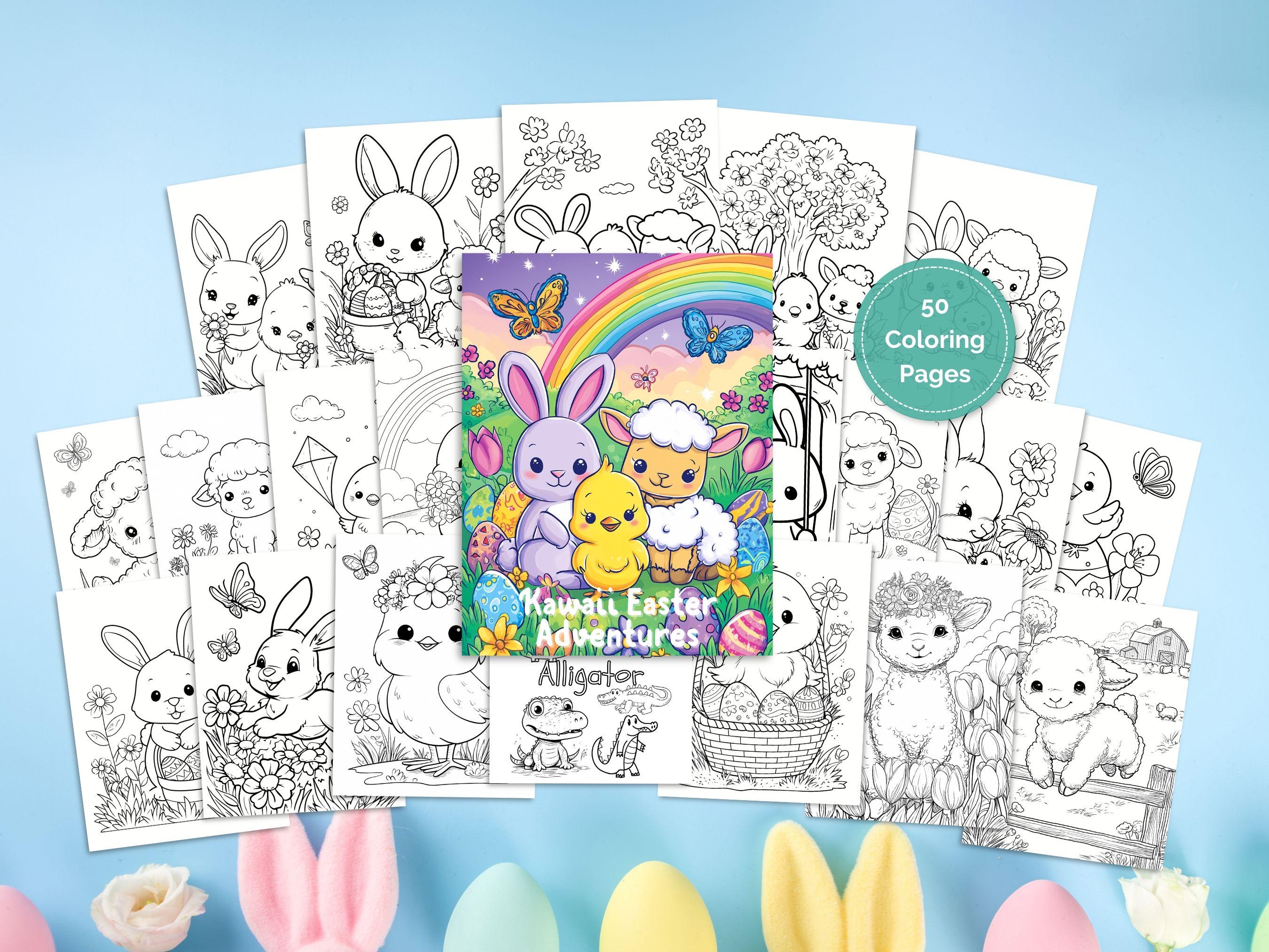 These 50 Kawaii Easter coloring pages feature adorable designs of bunnies, chicks, lambs, and springtime elements, perfect for an enjoyable and relaxing coloring experience!