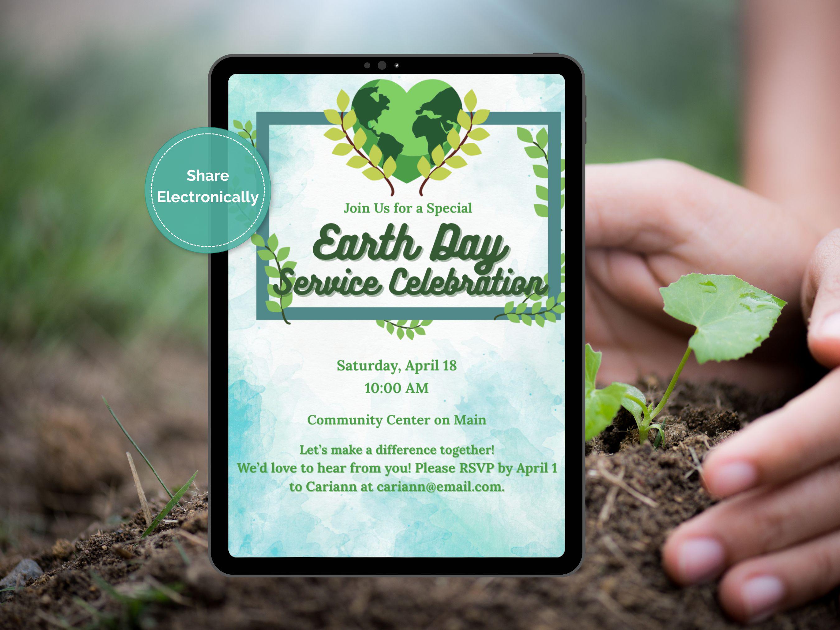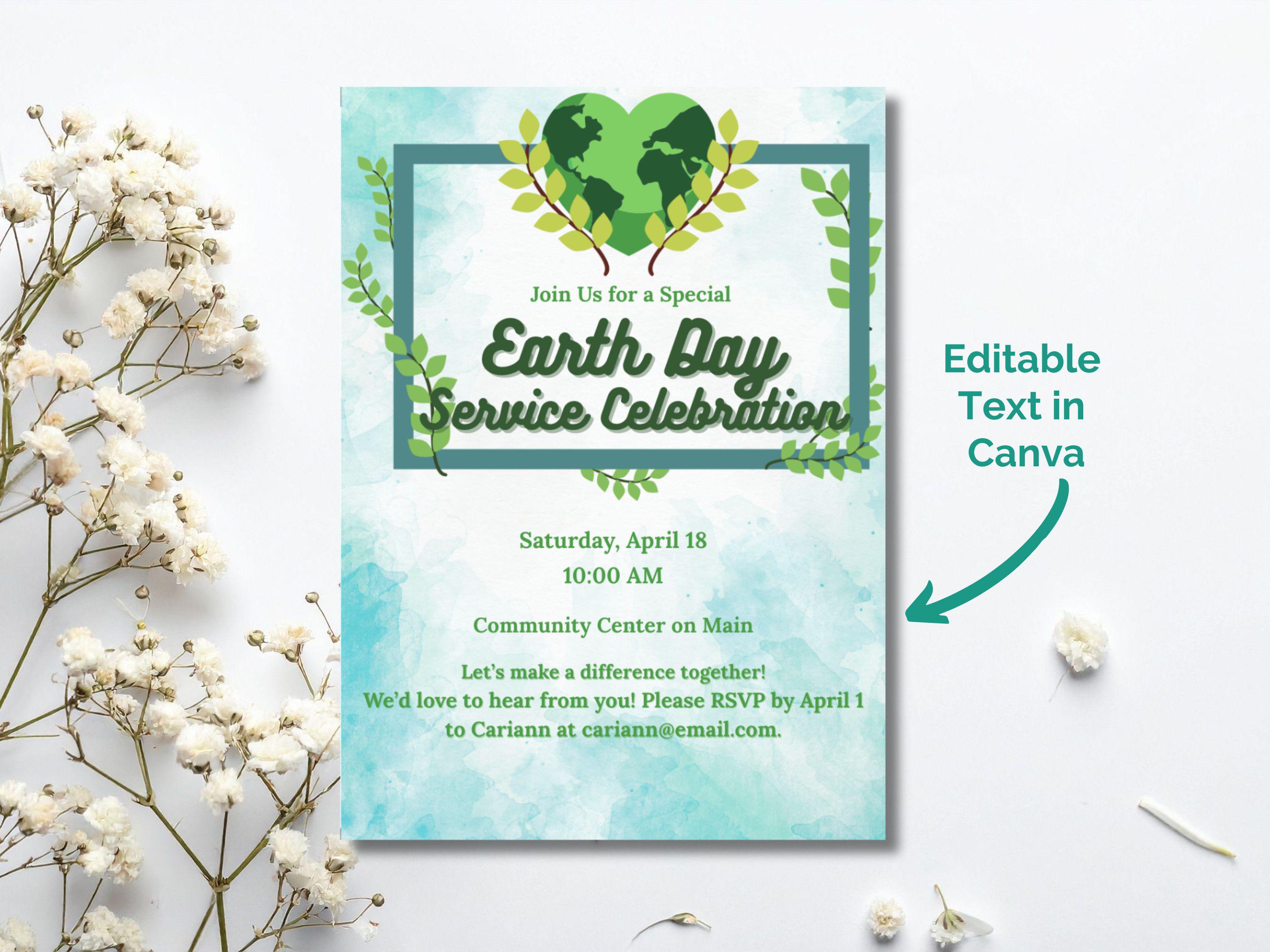 🌍 Celebrate Earth Day in Style! 🌿 Invite your community to make a difference with this Earth Day Editable Invitation Template—perfect for volunteer events, service days, or eco-friendly gatherings. Designed with a beautiful nature-inspired theme, this template is easy to customize using Canva Free—no design experience needed!