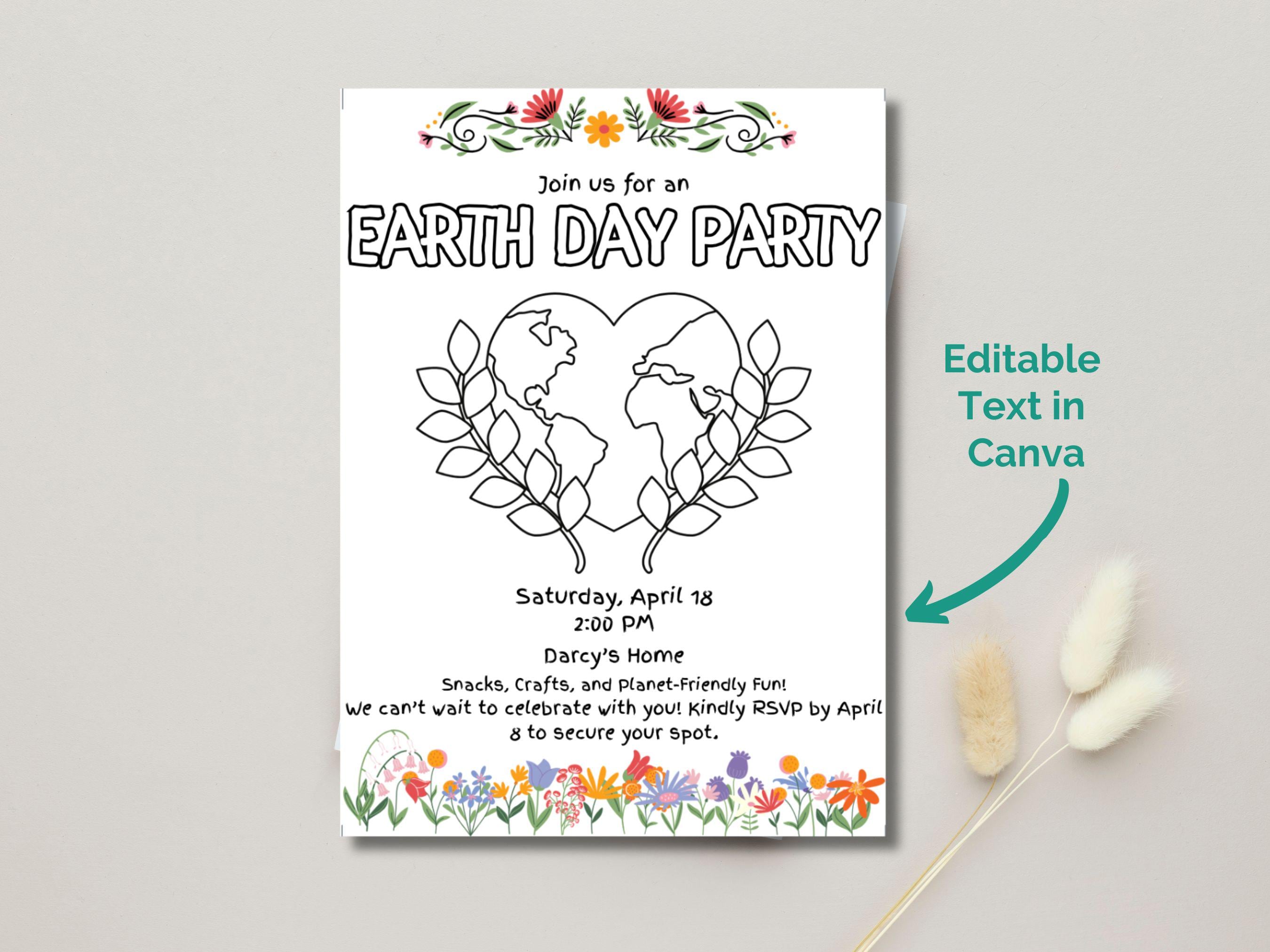 🌍 Host the Ultimate Earth Day Party! 🌿 Make your Earth Day celebration extra special with this Editable & Colorable Invitation Template! Perfect for kids and families, this fun and interactive design is easy to customize using Canva Free—no design experience needed.