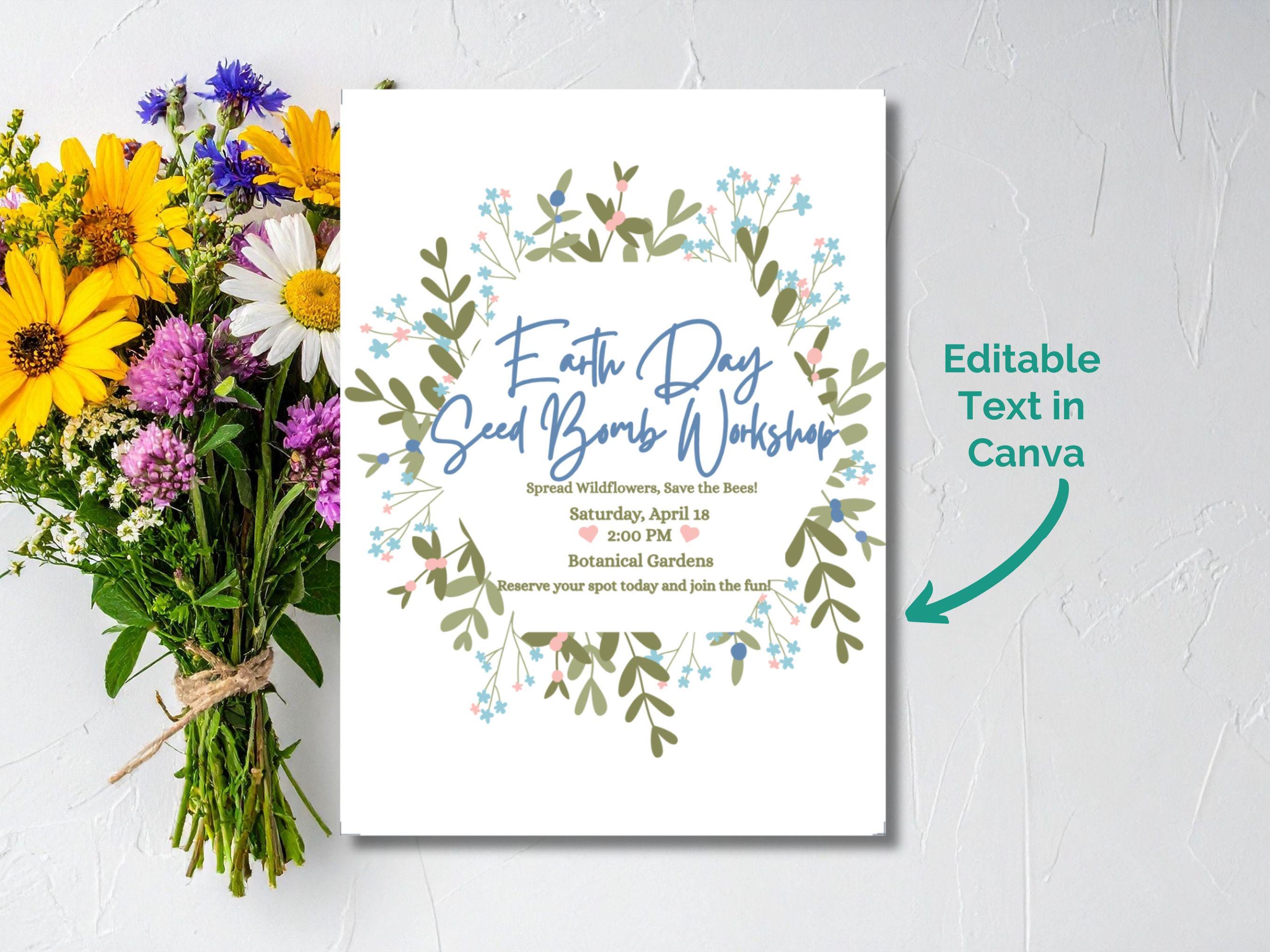 🌸 Host a Memorable Spring Event with This Editable Invitation! 🌿 Perfect for Earth Day, Easter, Mother’s Day, or any spring celebration, this Seed Bomb Workshop Invitation Template is a fun and eco-friendly way to invite guests to your event. Fully customizable and easy to edit in Canva Free, this template is ideal for workshops, community events, or family-friendly gatherings.