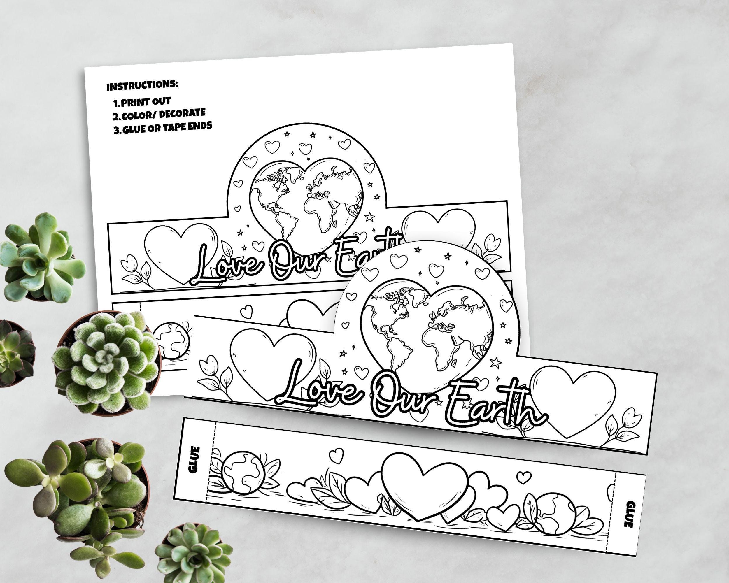 🖍️ How It Works Download: Access your digital file instantly after purchase. Print: Print the template at home on standard US Letter paper. We recommend using cardstock for extra durability. Color: Let kids use their favorite markers, crayons, or colored pencils to decorate the Earth, hearts, and stars. Assemble: Simply cut along the bold lines and tape or glue the band strips to the main crown piece.