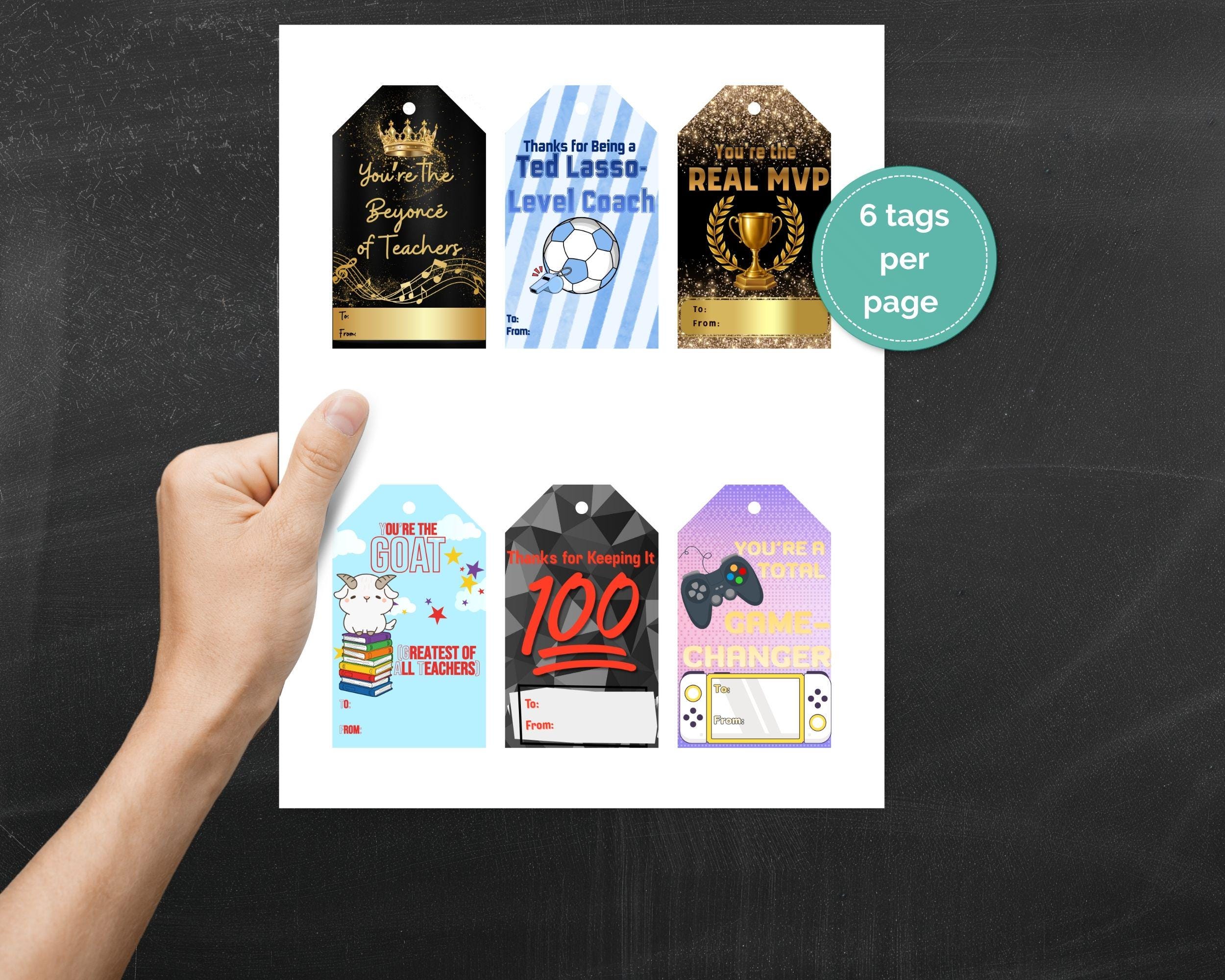 Trendy Pop Culture Gift Tags for Teachers – Perfect for Teacher Appreciation - Set of 6 (PDF Document)