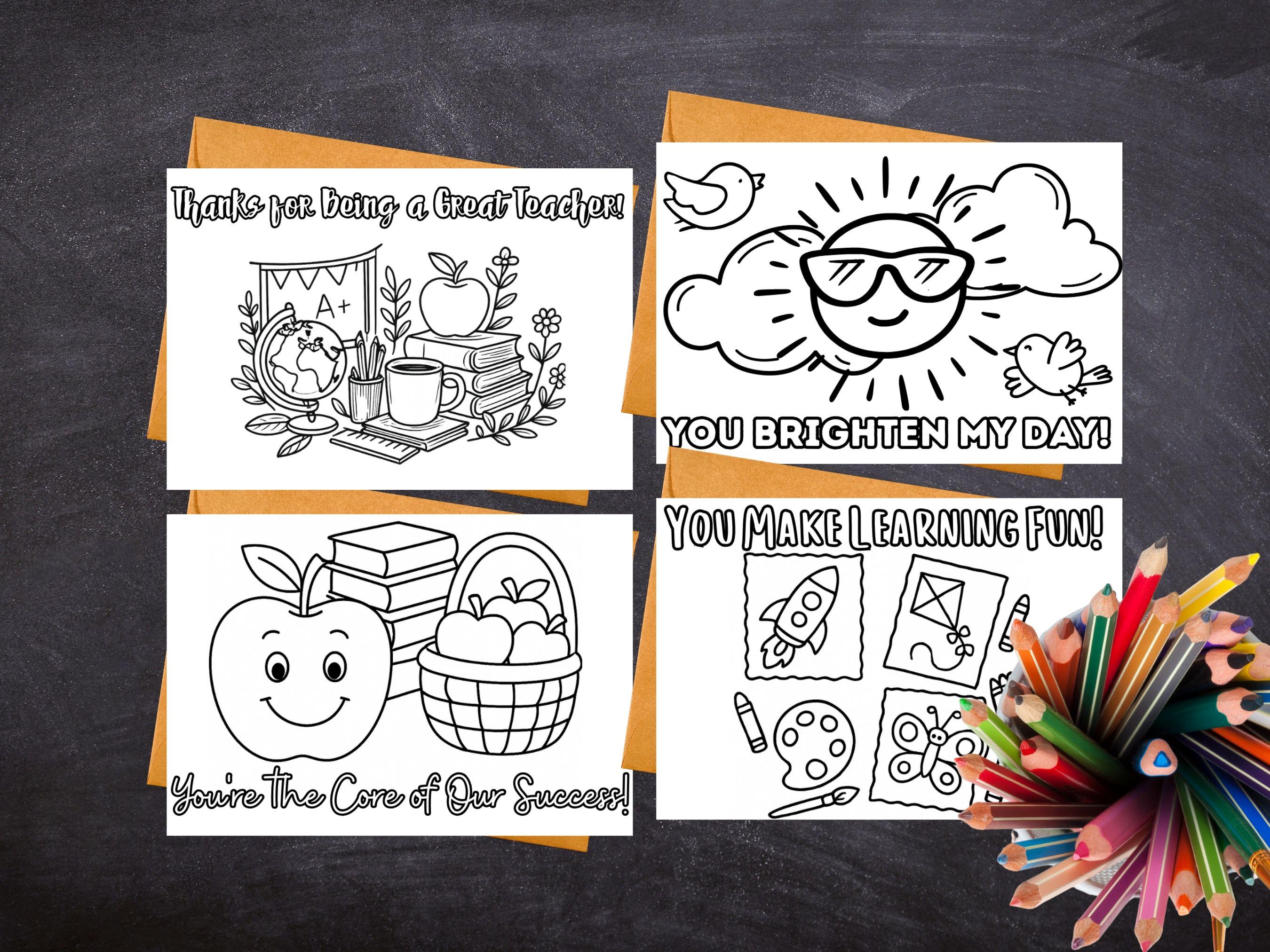 Celebrate the amazing teachers in your life with these fun and creative colorable cards! 🌟🖍️💖