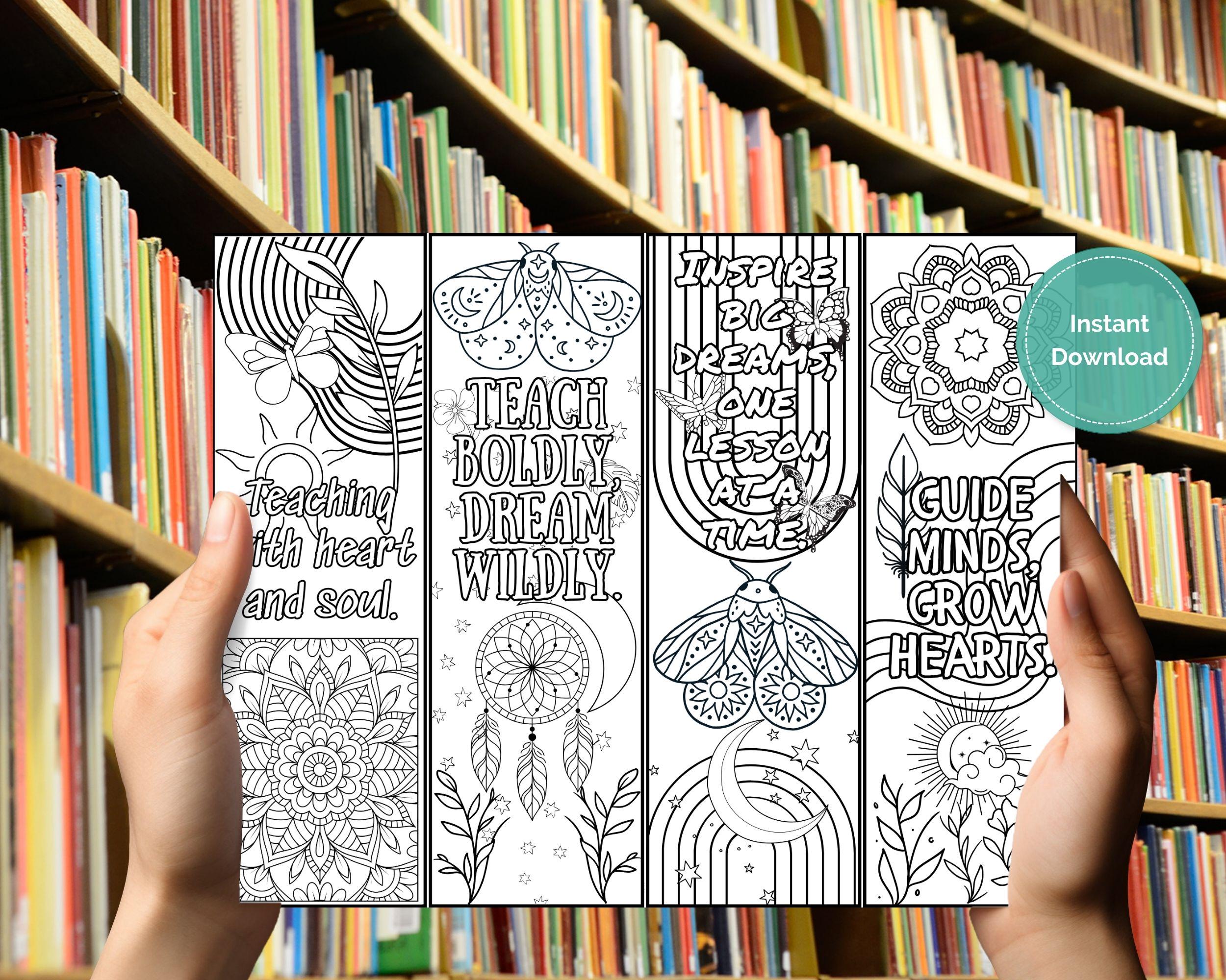 Boho Printable Coloring Bookmarks – Teacher Appreciation Gift for Kids and Adults - Set of 4 (PDF Document)