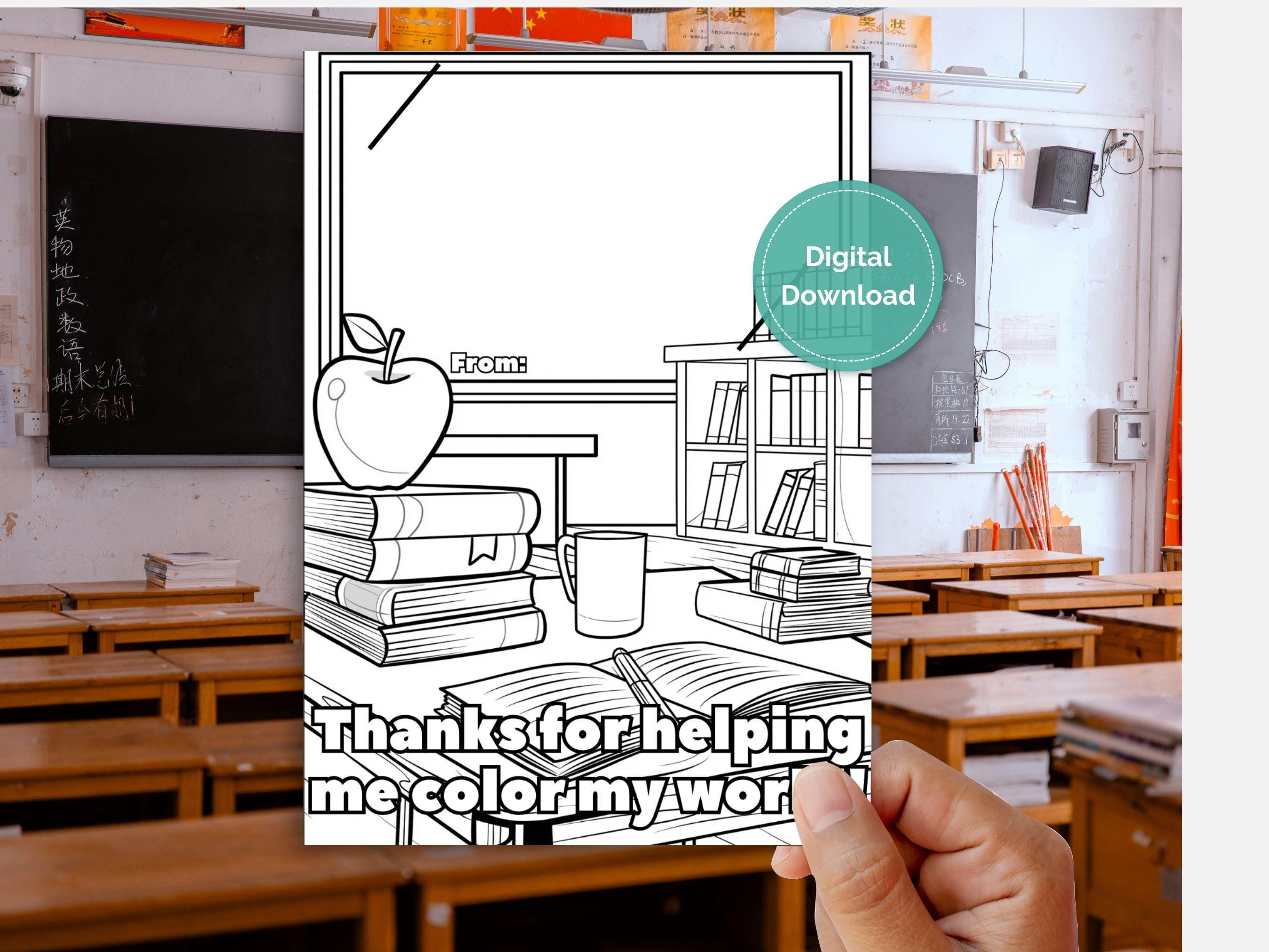🎨 Colorable Teacher Gift Card Holder - Whimsical Desk Design 🍎