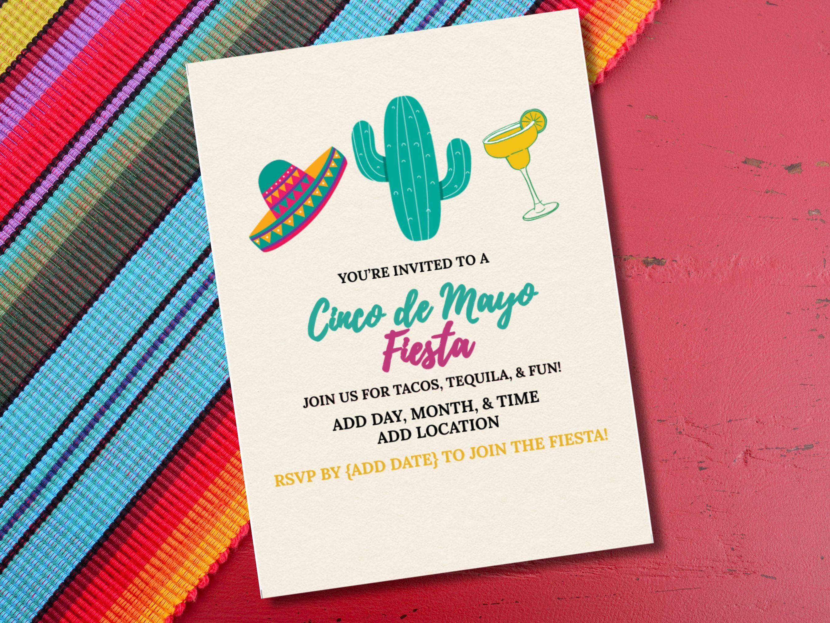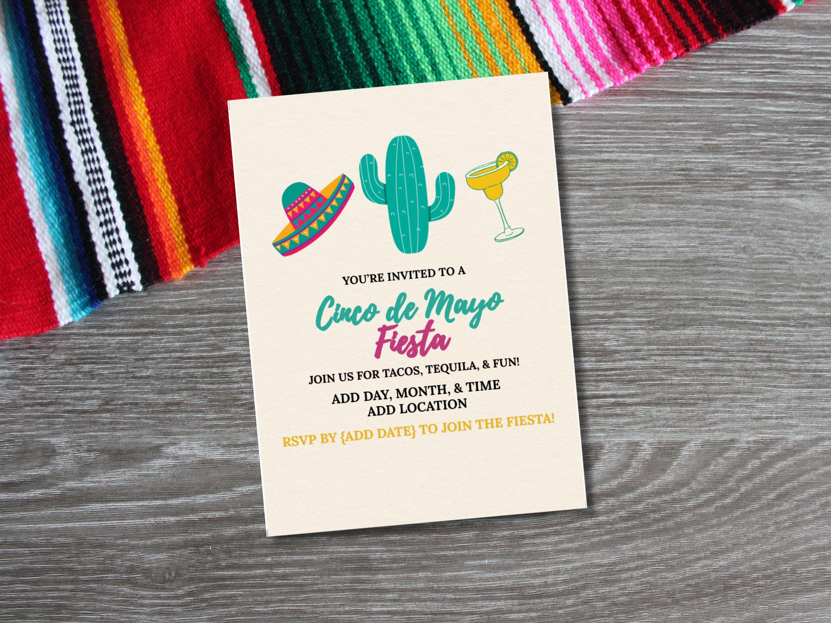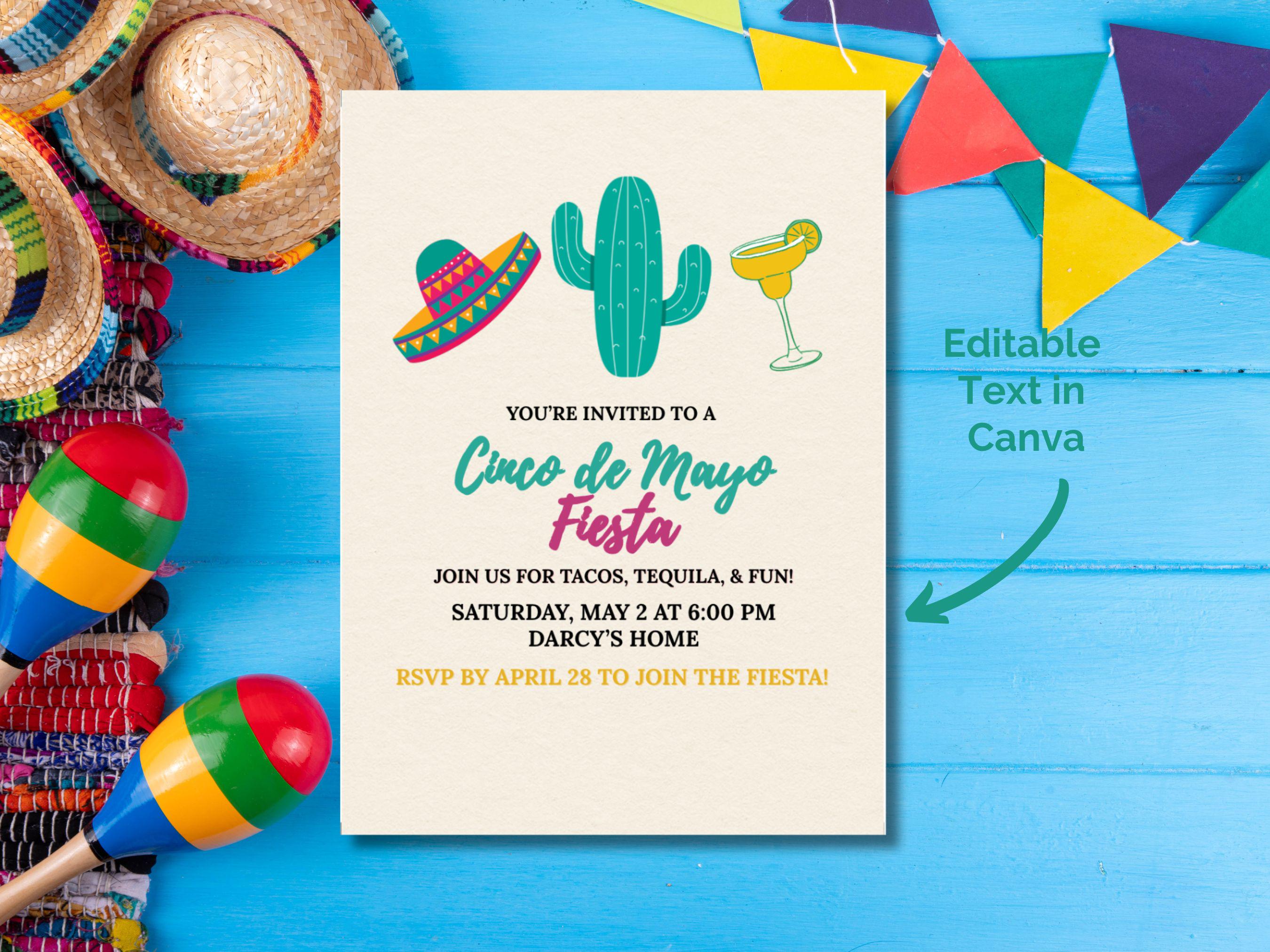 Minimalist Cinco de Mayo Fiesta Invitation Template – Party Invite (Editable in Canva)
