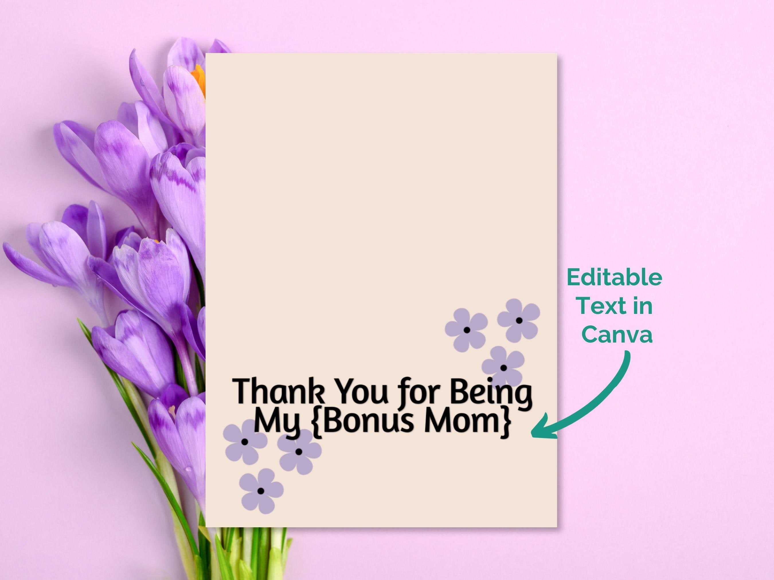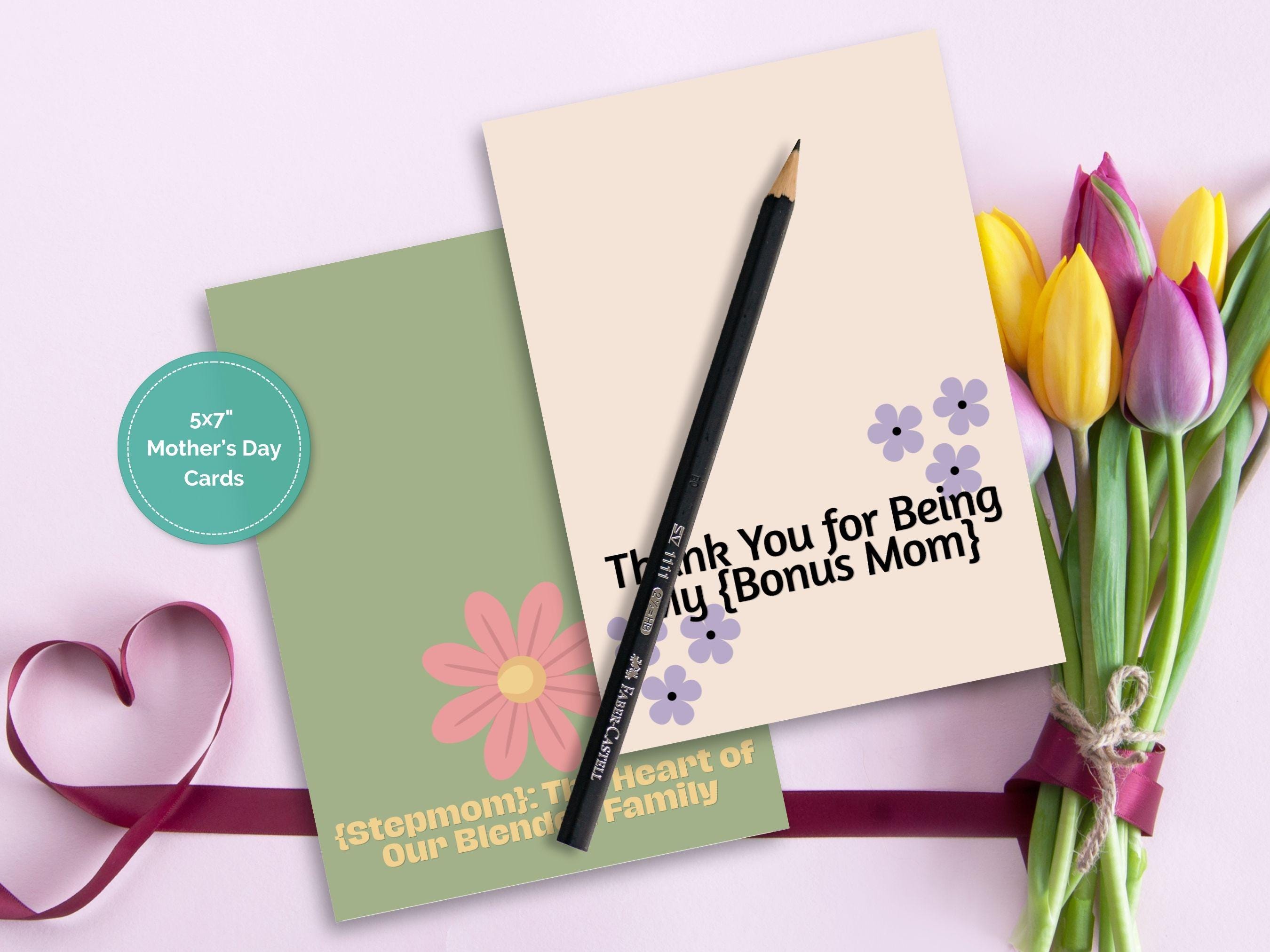 Mother’s Day Cards for Bonus Mom & Stepmom - Modern Printable Gift - Set of 2 (Editable in Canva)