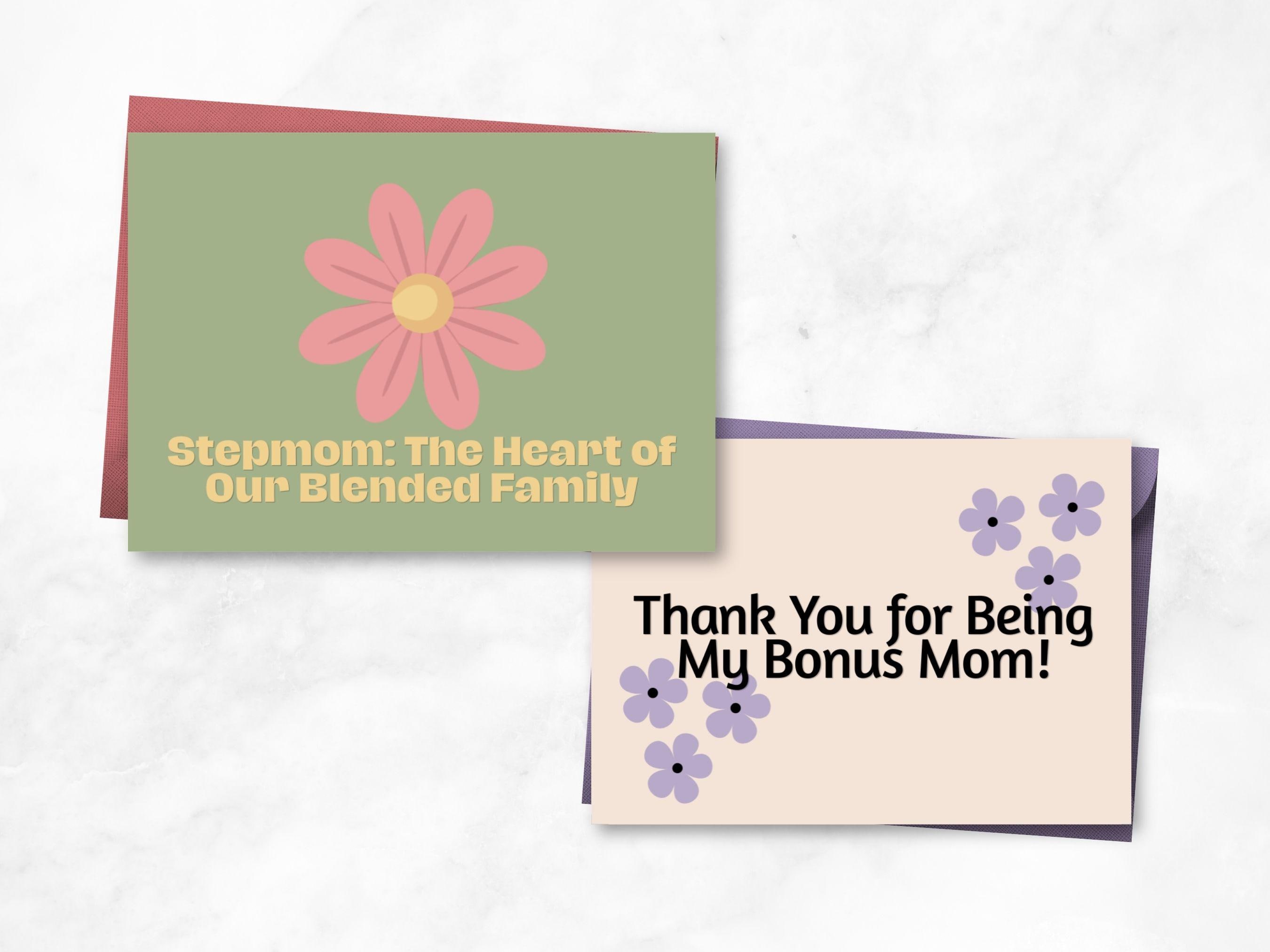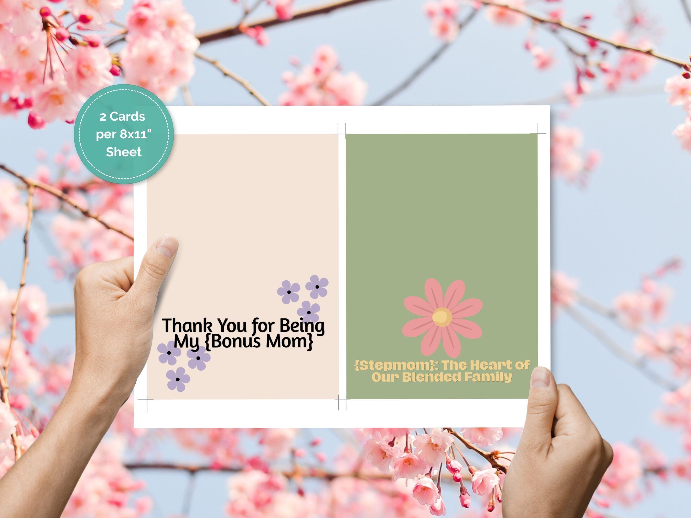Print & Gift: Print the cards at home or professionally, then share them with the Bonus Mom or Stepmom who makes your family special. 💕
