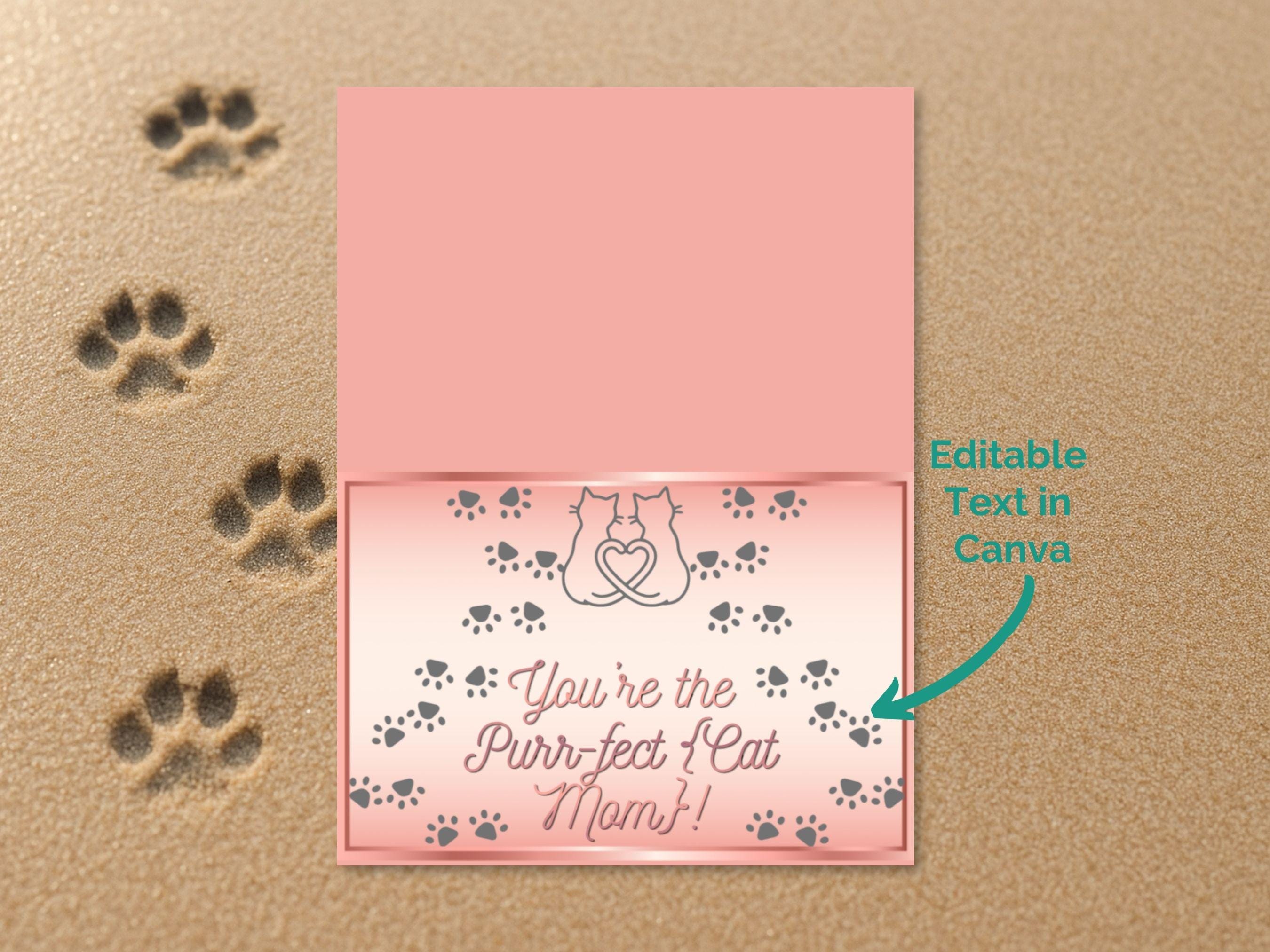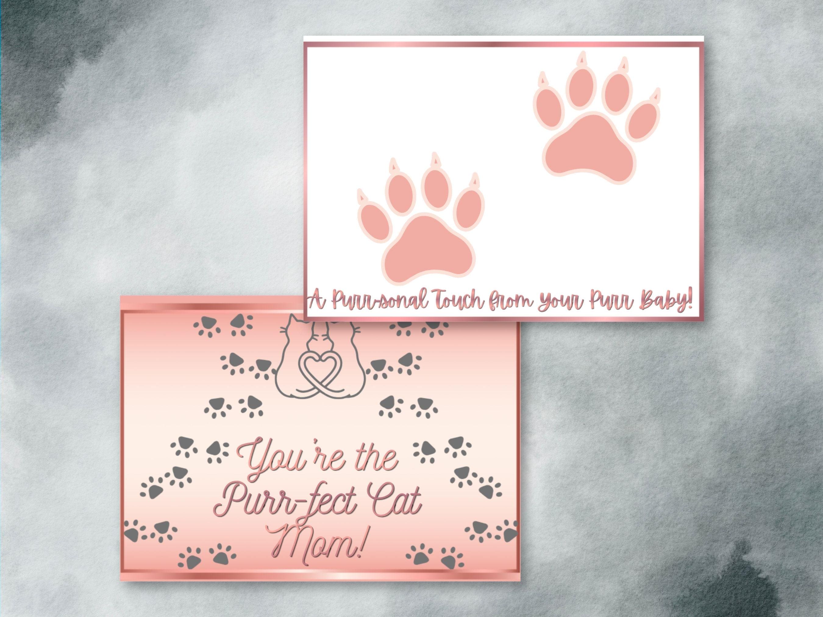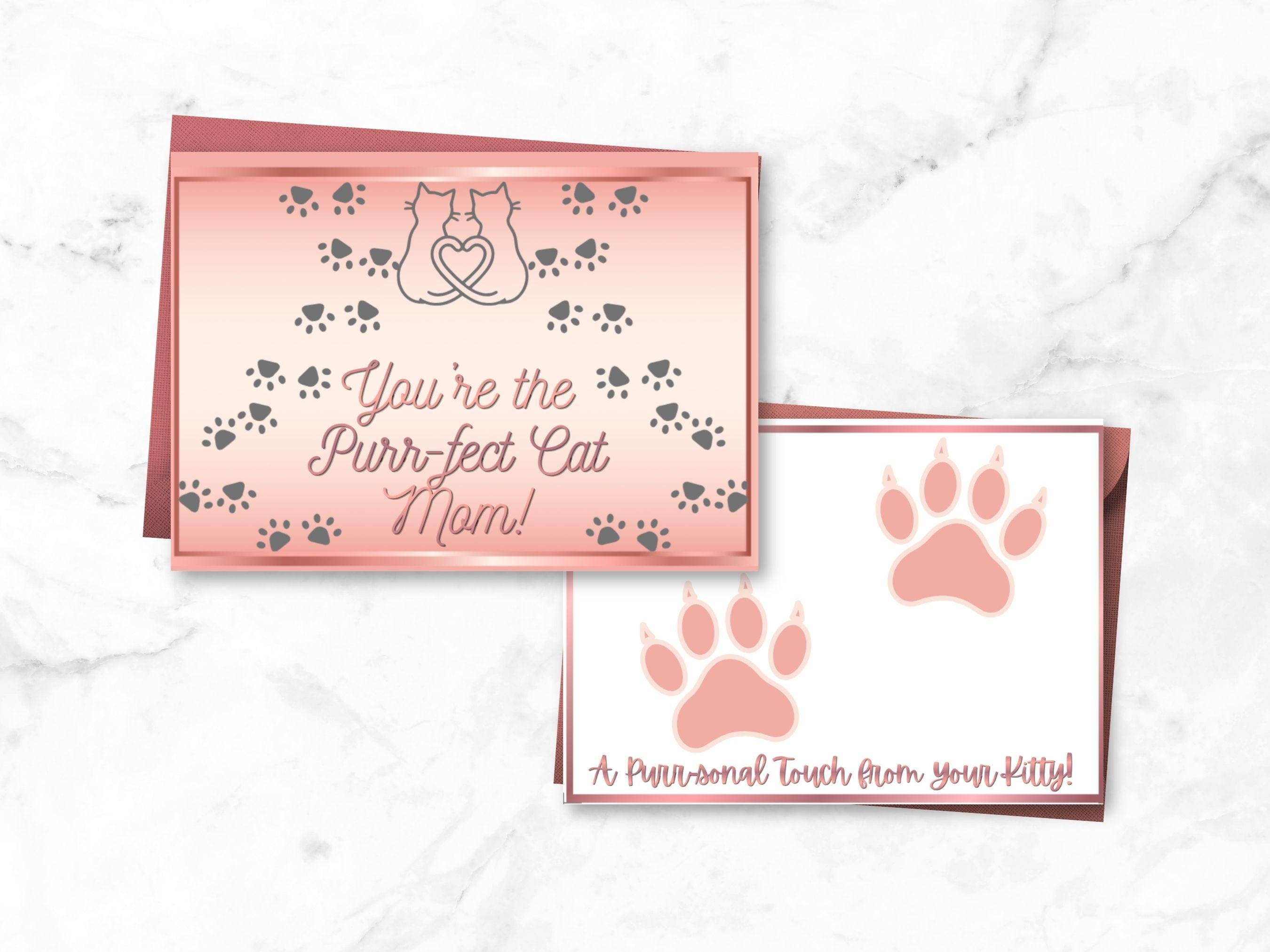 Cat Mom Mother’s Day Card – Rose Gold Purr-fect Design with Paw Prints - Set of 2 (Editable in Canva)