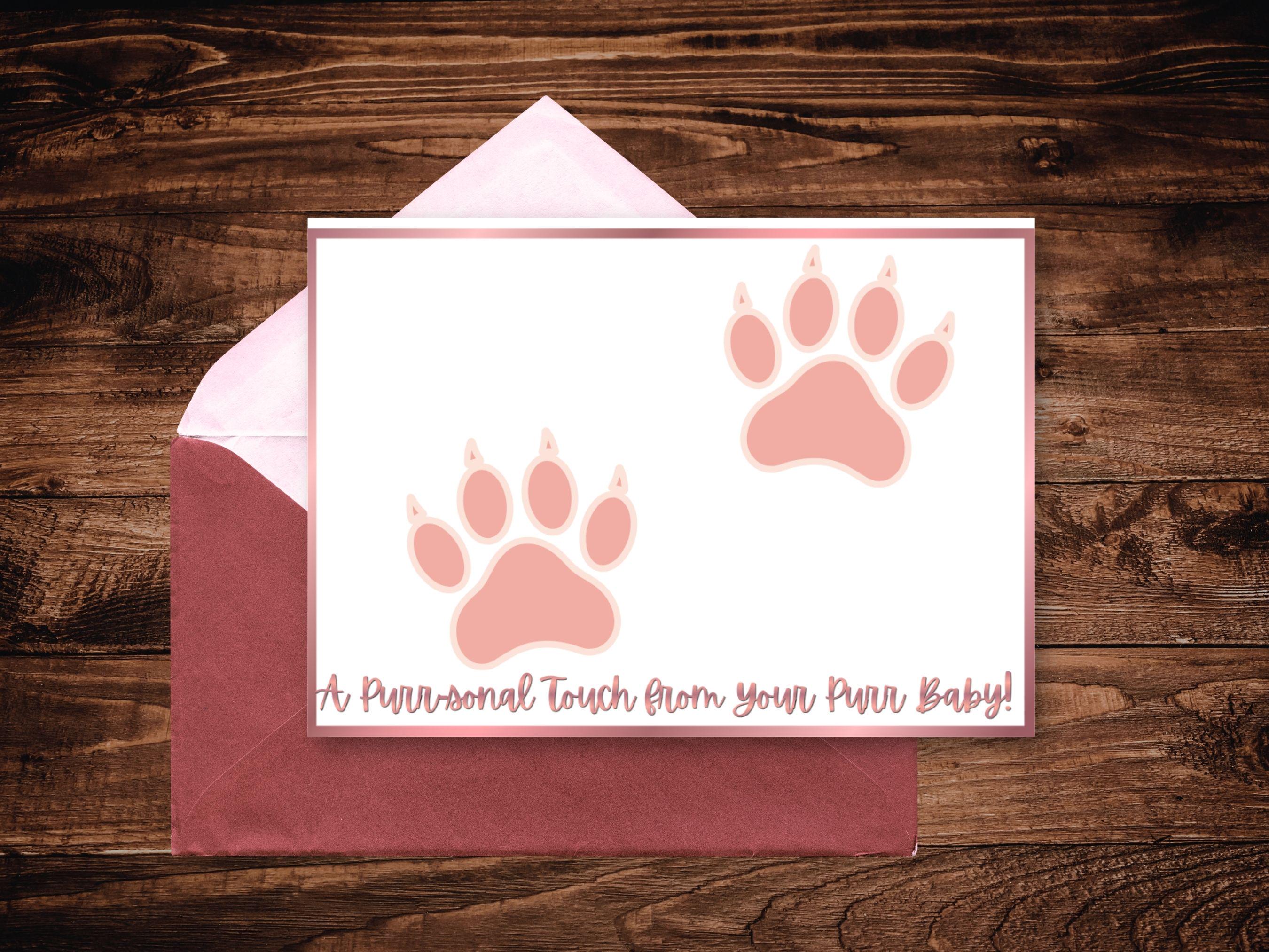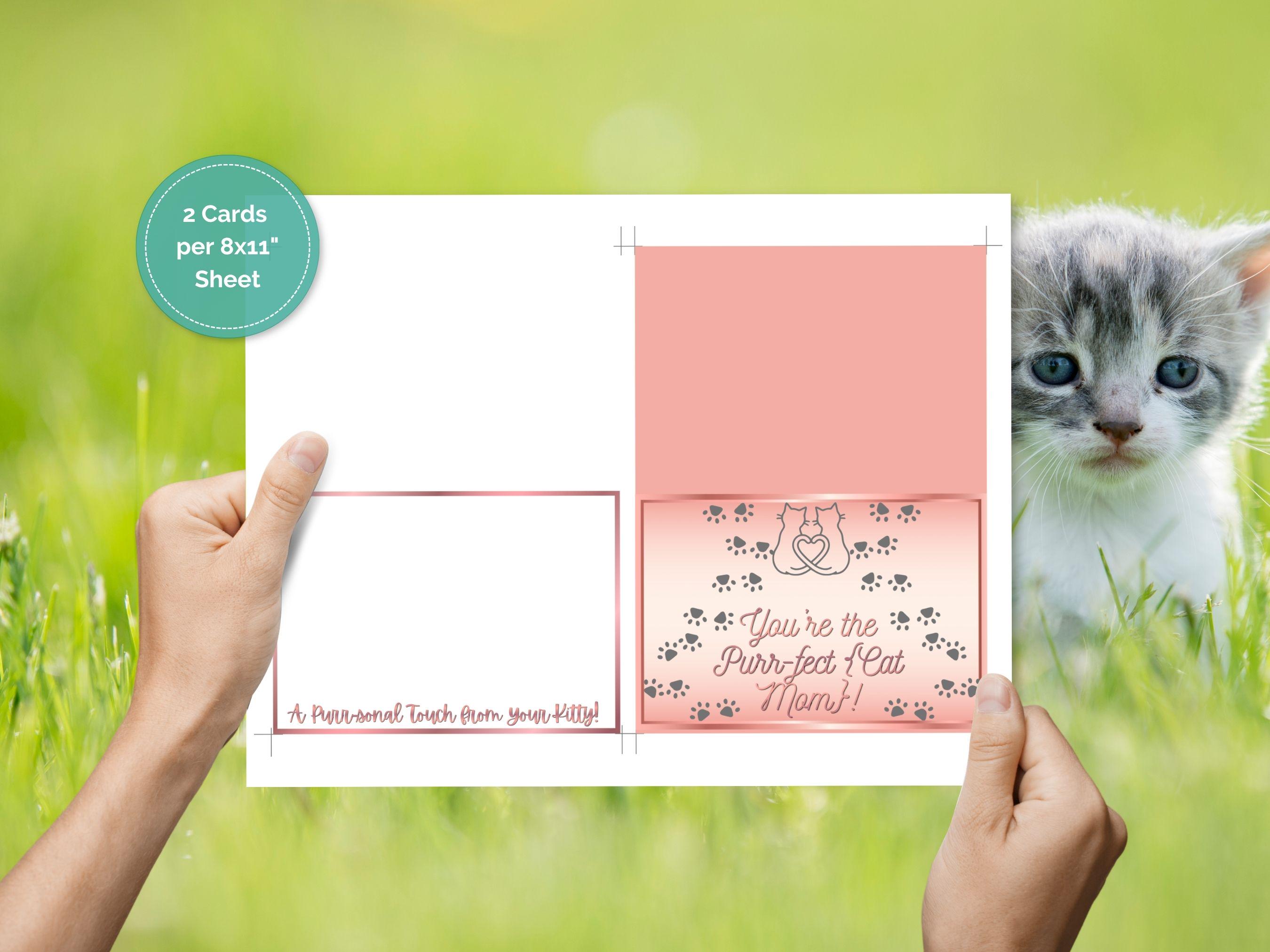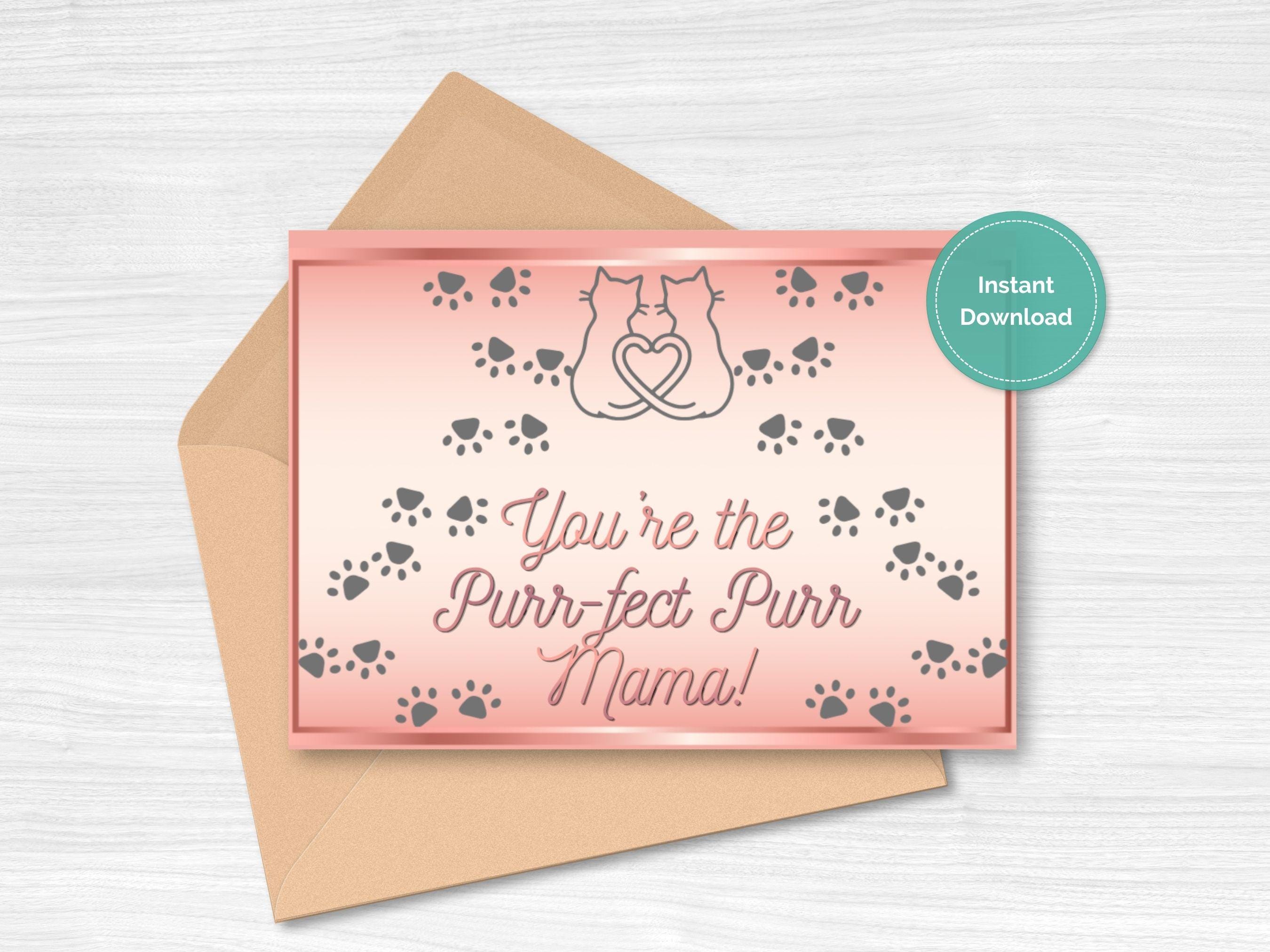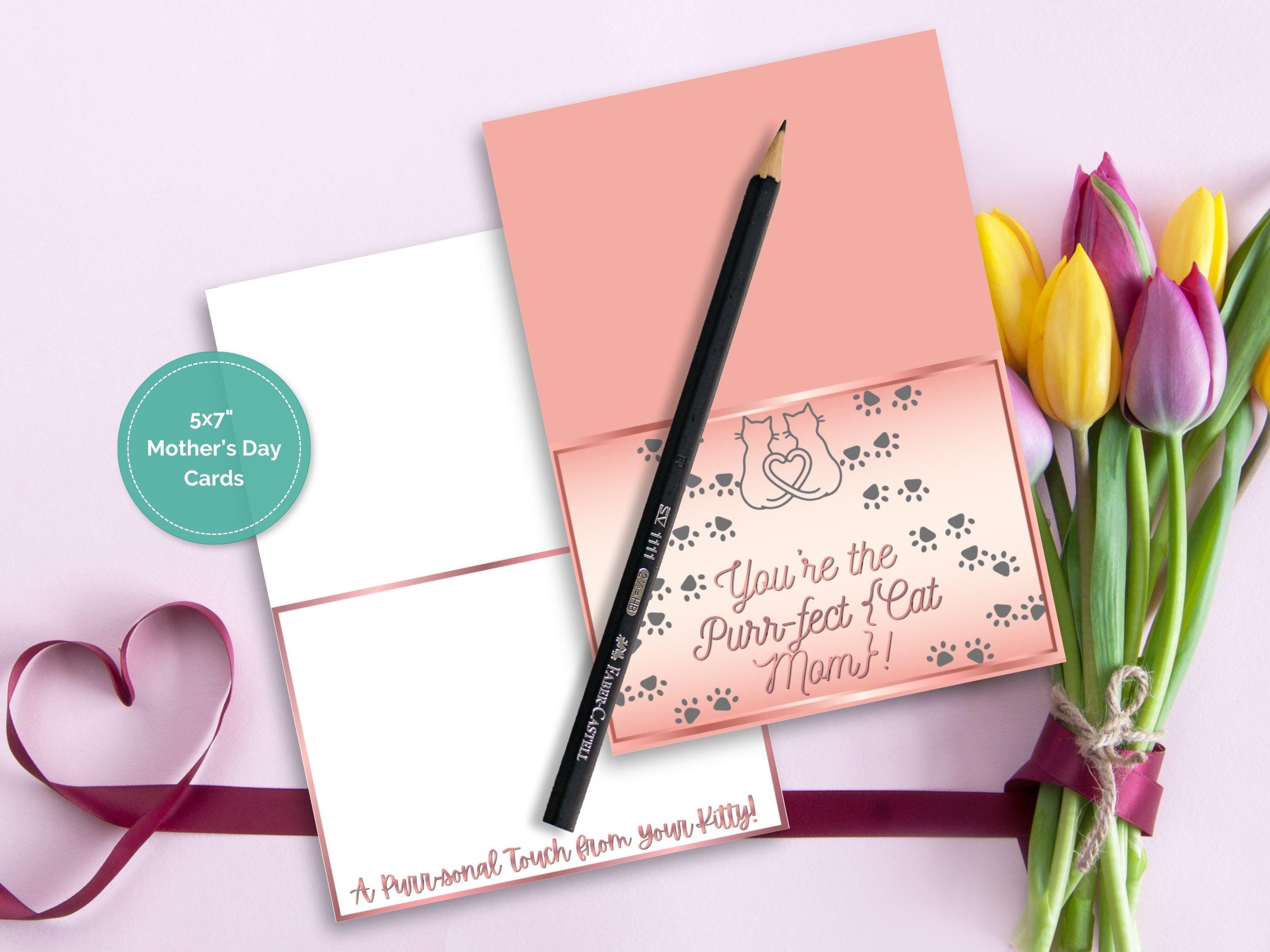 Cat Mom Mother’s Day Card – Rose Gold Purr-fect Design with Paw Prints - Set of 2 (Editable in Canva)