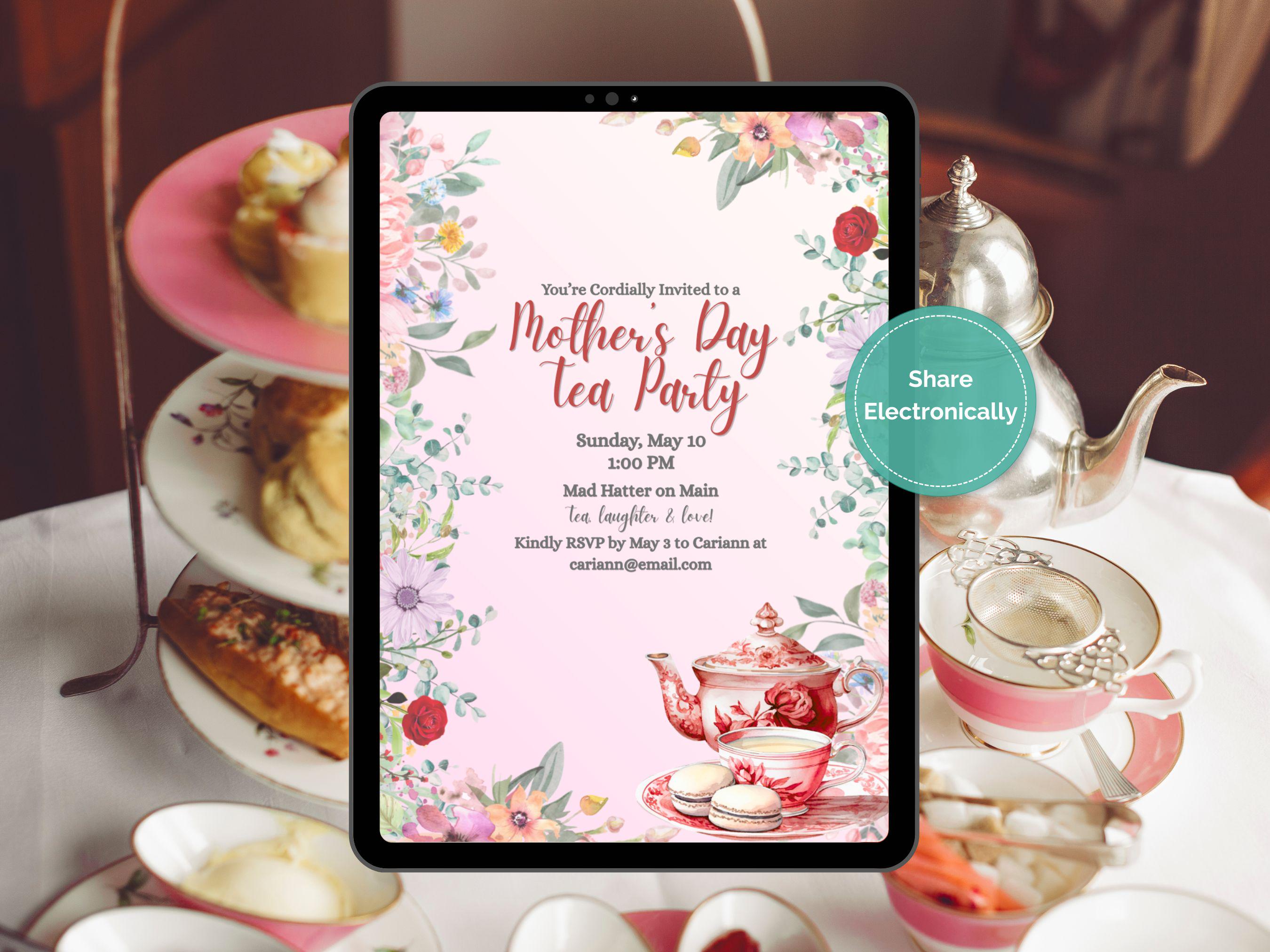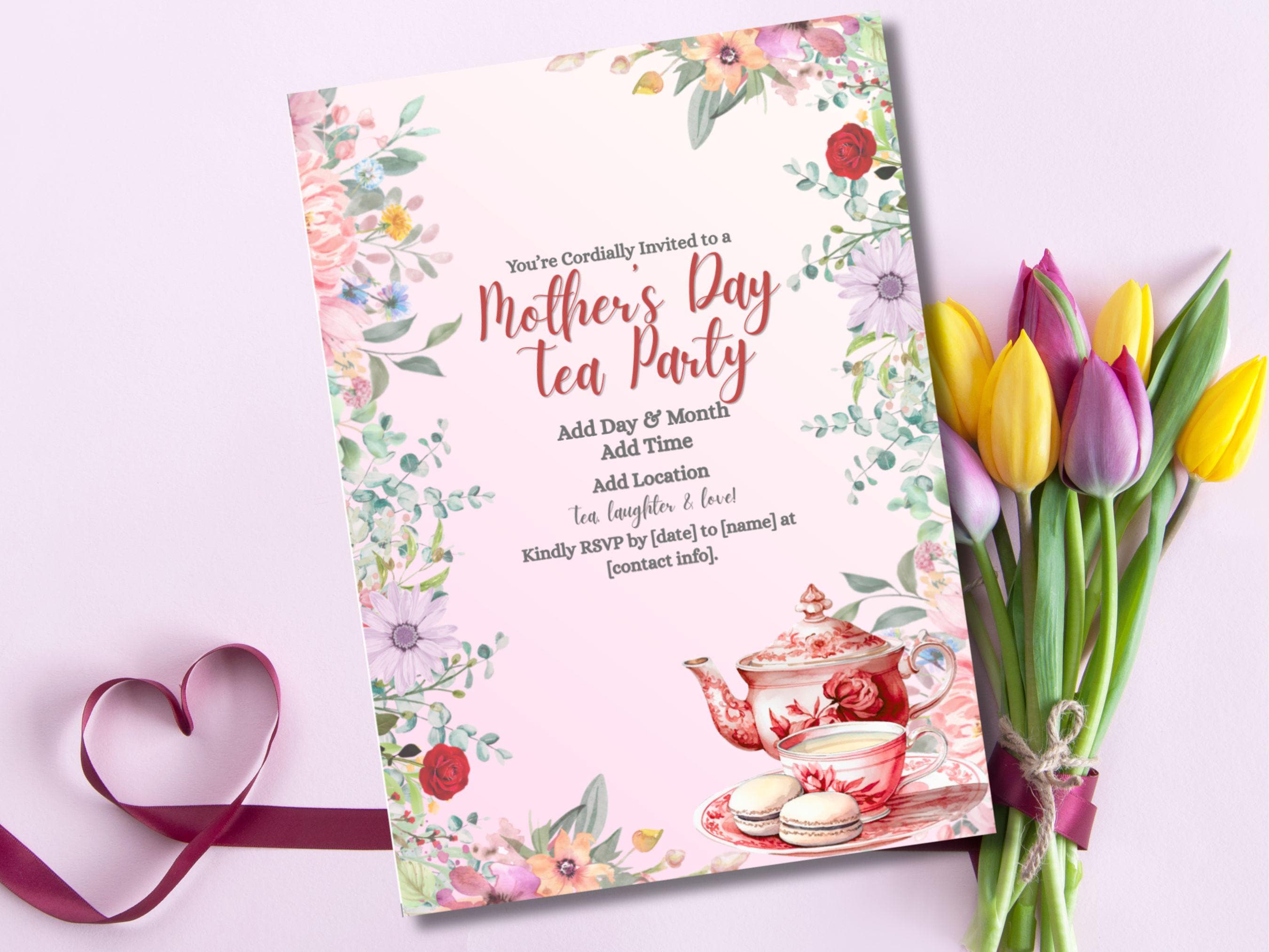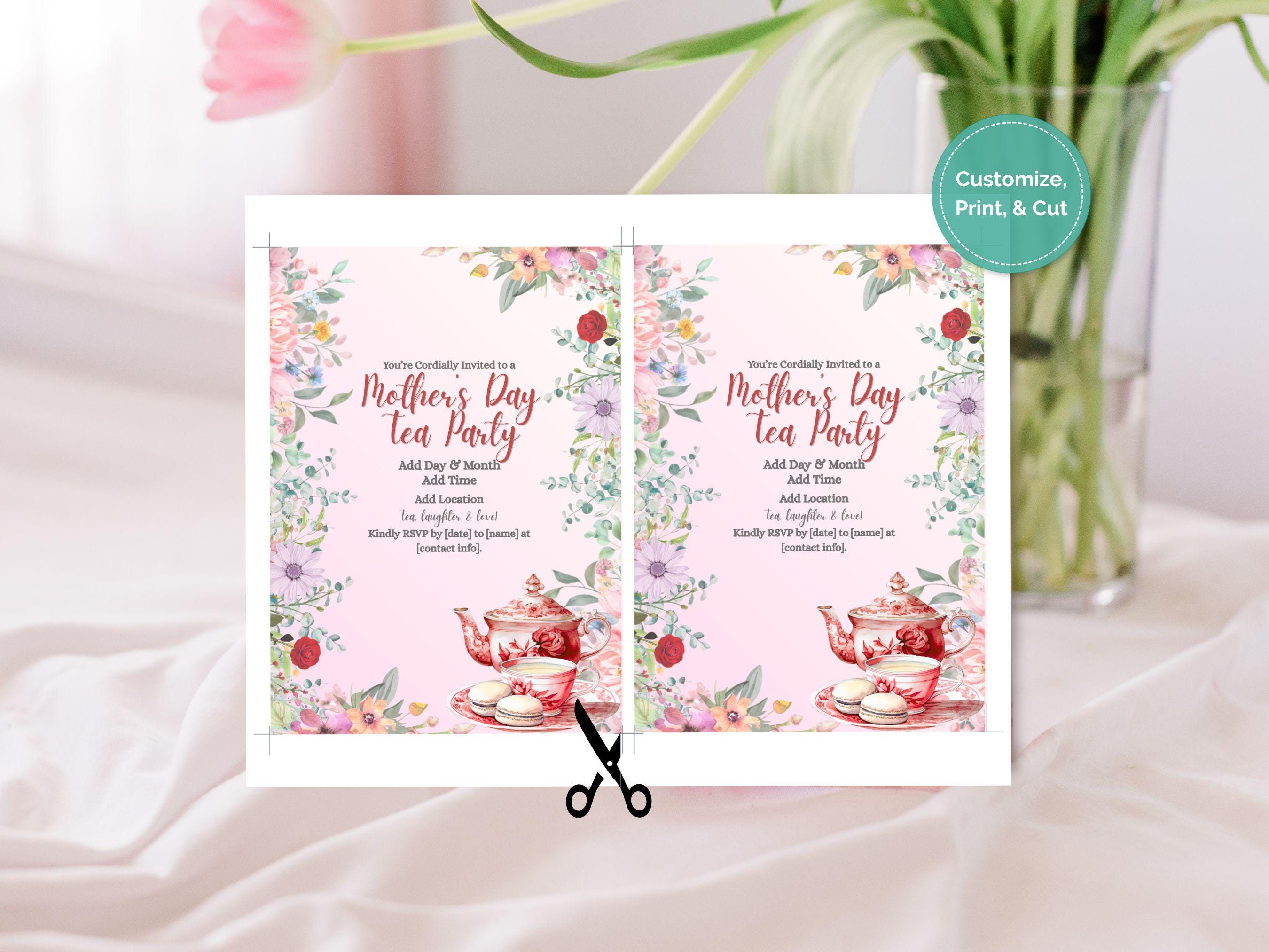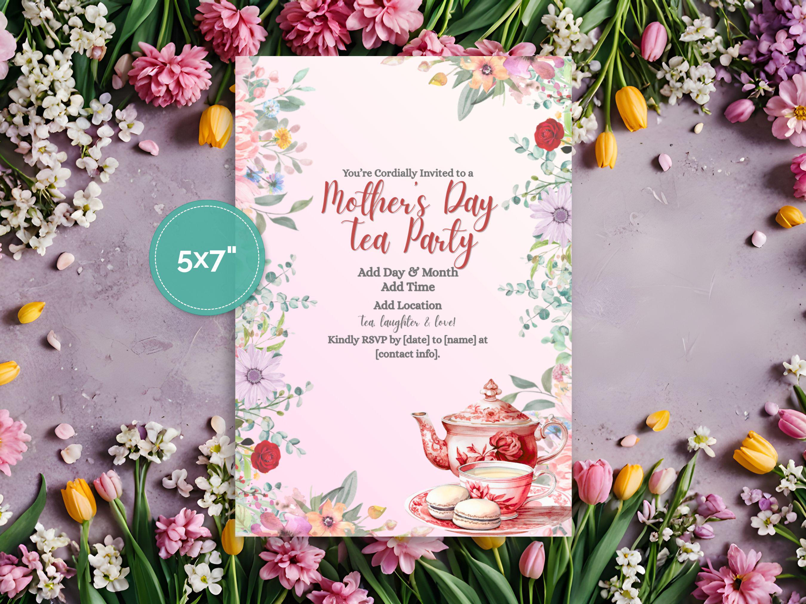 🌸 Mother's Day Tea Party Invitation – Editable & Printable ☕✨