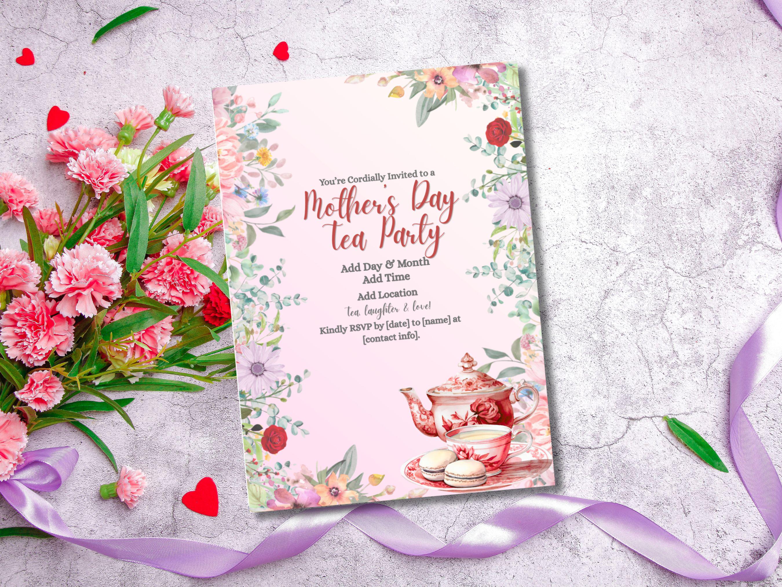 Celebrate Mom with an elegant tea party! This beautifully designed invitation is perfect for creating a memorable and charming event. 💐🍵