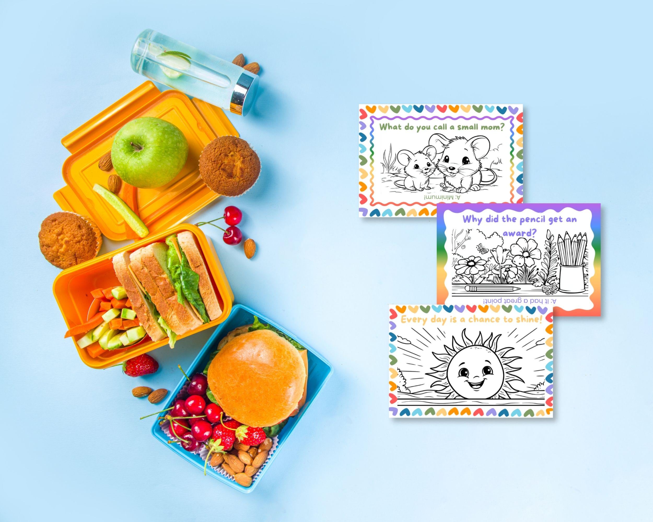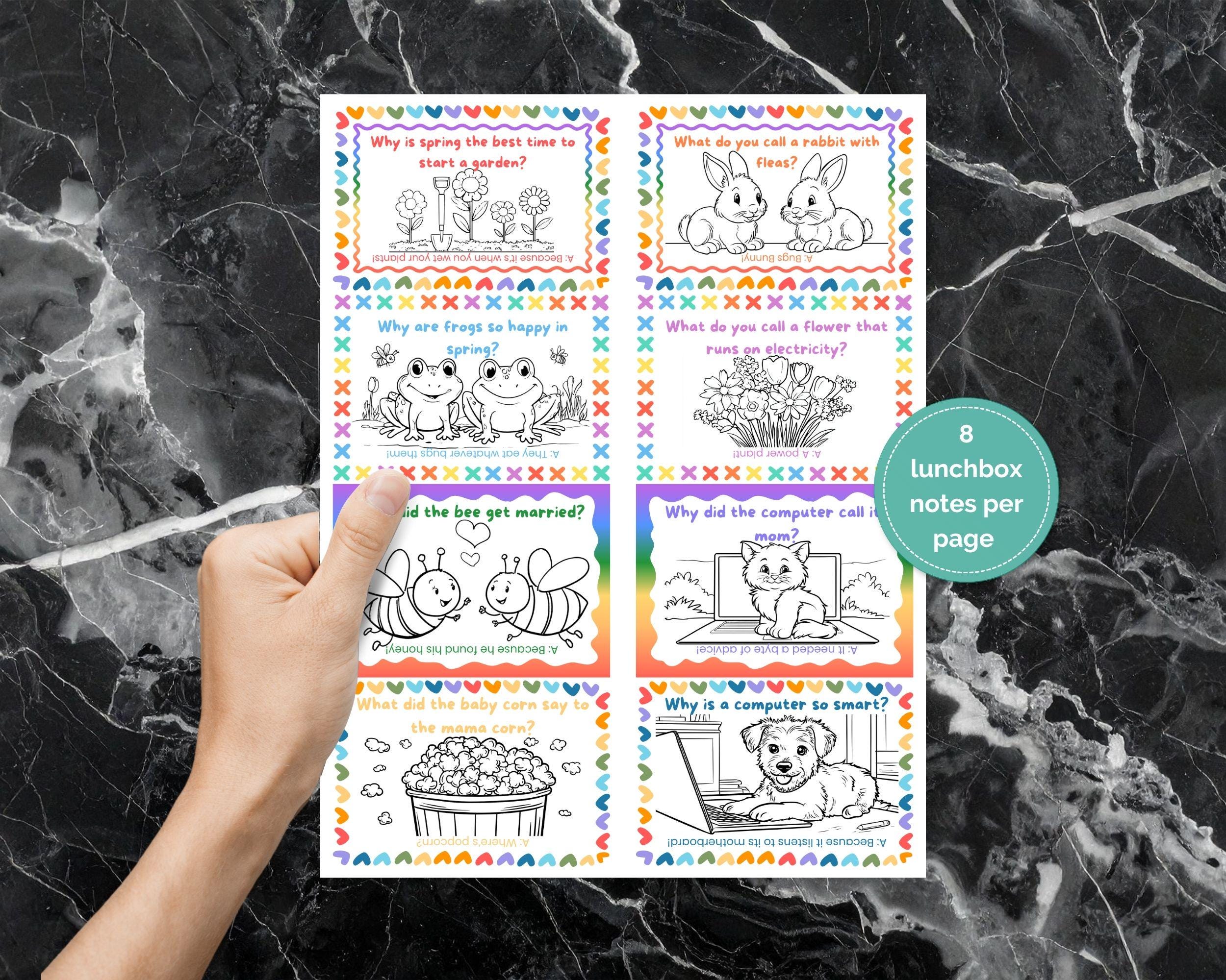 Editable Spring Lunchbox Notes - Kids' Colorable Jokes & Motivational Cards - Back to School Riddles