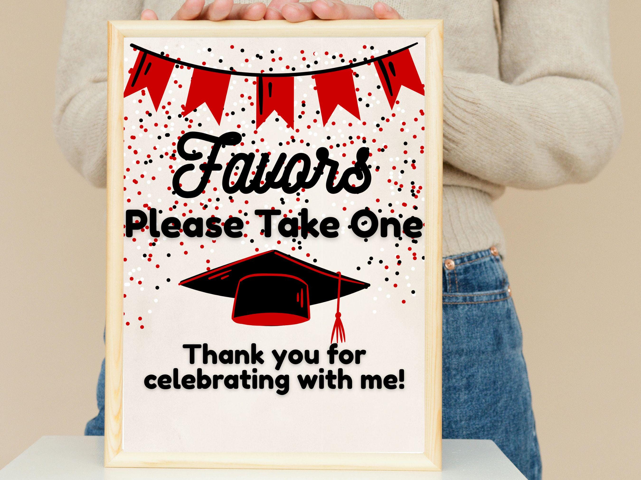 Create a beautiful and cohesive graduation celebration in just a few clicks. Grab your editable favor sign template today and start customizing your party decor! If you need a hand or have any questions, please send us a message—we are always happy to help.